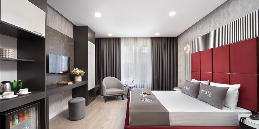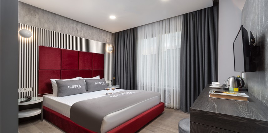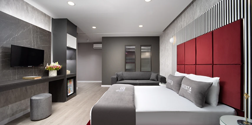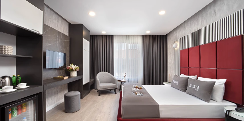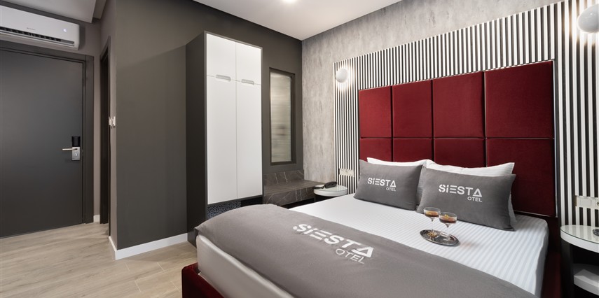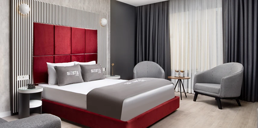 Siesta Otel’de farklı ihtiyaçlara hitap eden çeşitli oda tipleri mevcuttur. Odaların tamamı modern bir dekorasyona sahip olup, konukların konforu için özenle düzenlenmiştir. Odalarda genellikle şu olanaklar bulunur: