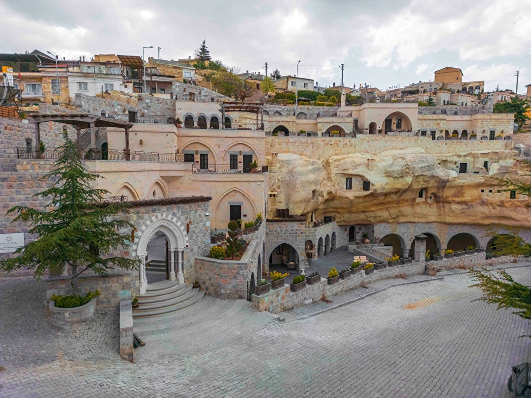 Kapadokya'nın mistik vadileri ve peri bacaları arasında yer alan Signature Cave Cappadocia Trademark Collection By Wyndham, otantik ve zarif bir konfor arayan gezginler için olağanüstü bir deneyim sunuyor. Butik otelimiz, antik kaya oluşumlarının doğal cazibesini modern zarafetle harmanlayarak, tarih ve lüksün buluştuğu eşsiz bir kaçış noktası yaratıyor.