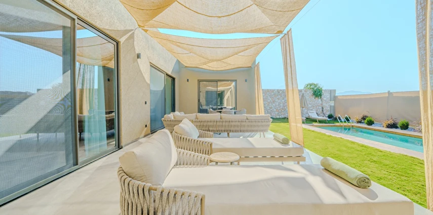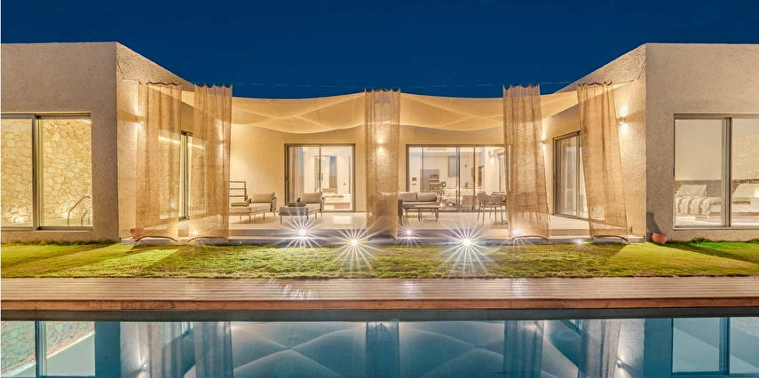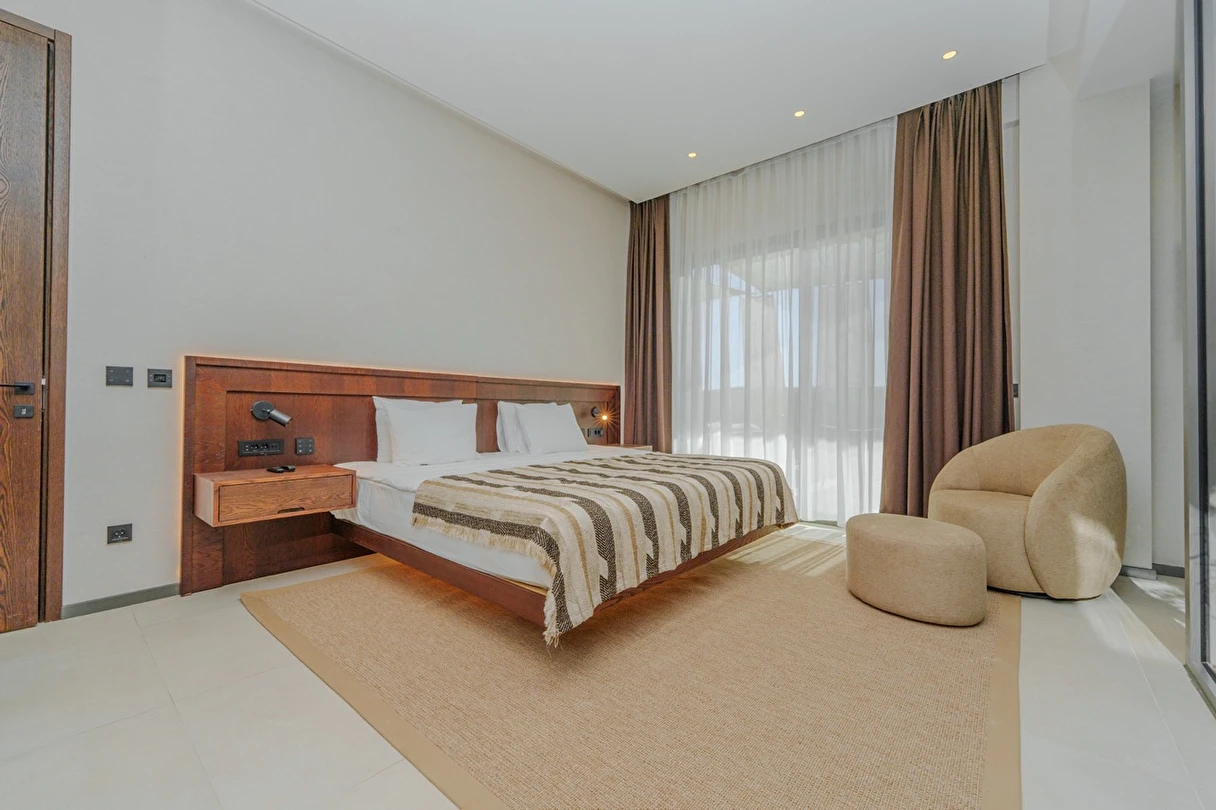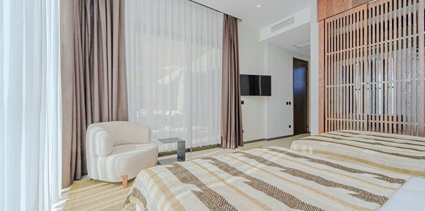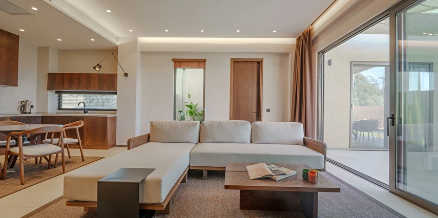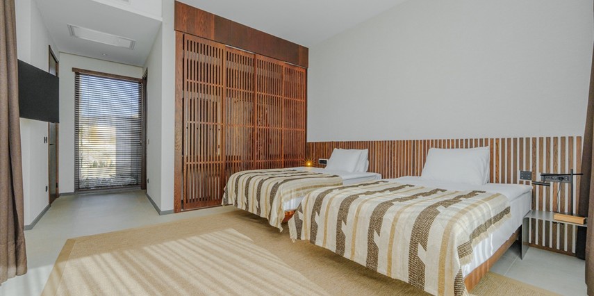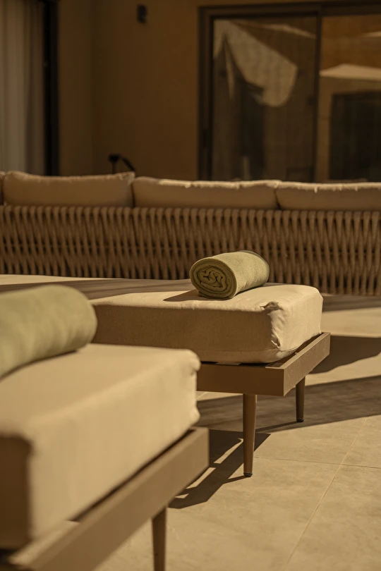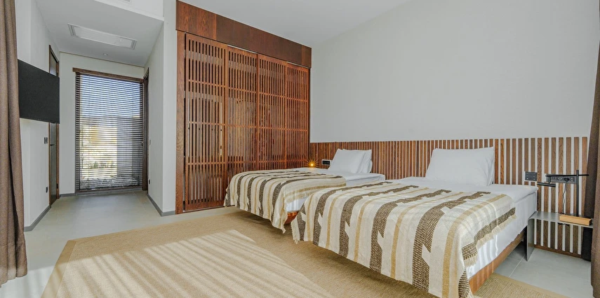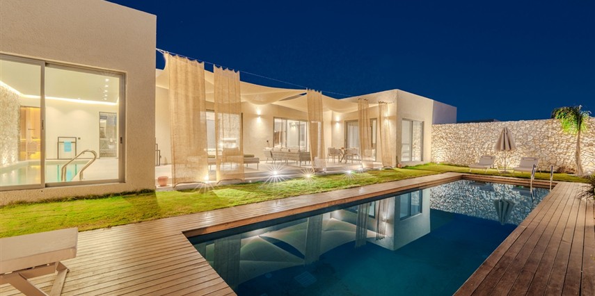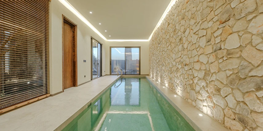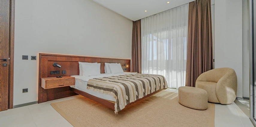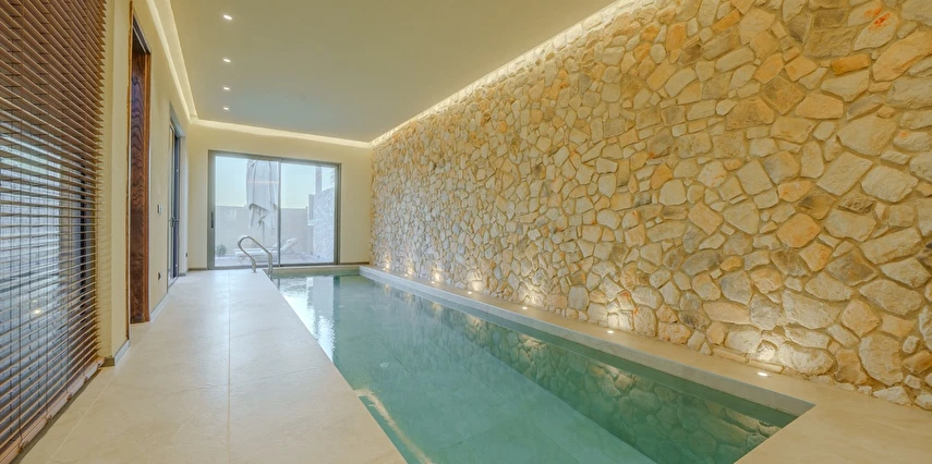 155 m² genişliğinde, 2+1 konseptli villalarımızda; ışığın gün boyu dans ettiği ferah salonlar, modern tasarımlı yatak odaları ve misafirlerimizin özel kullanımına ait ısıtmalı kapalı havuz, açık havuz, hamam, buhar odası ve sauna yer alıyor.