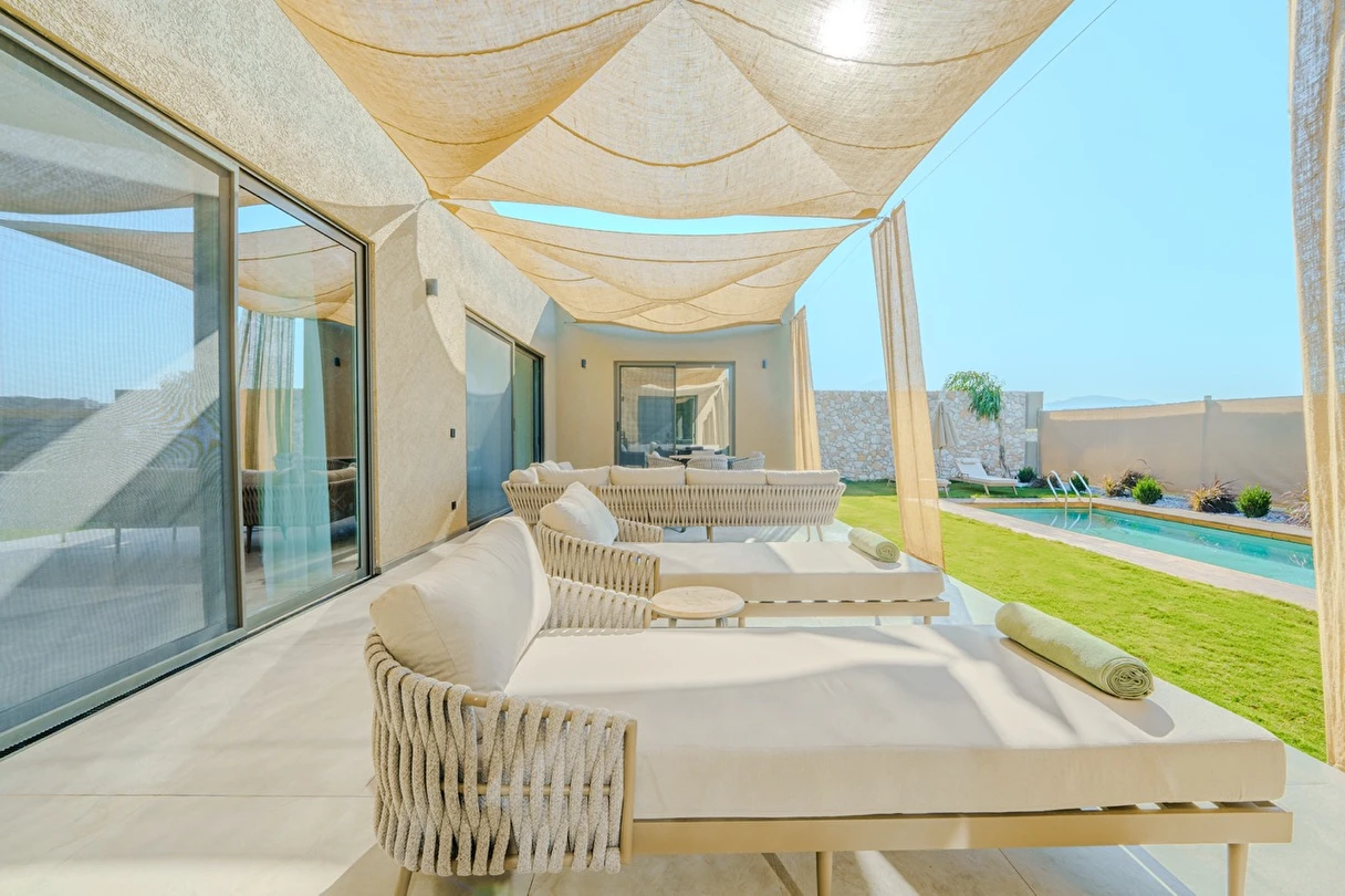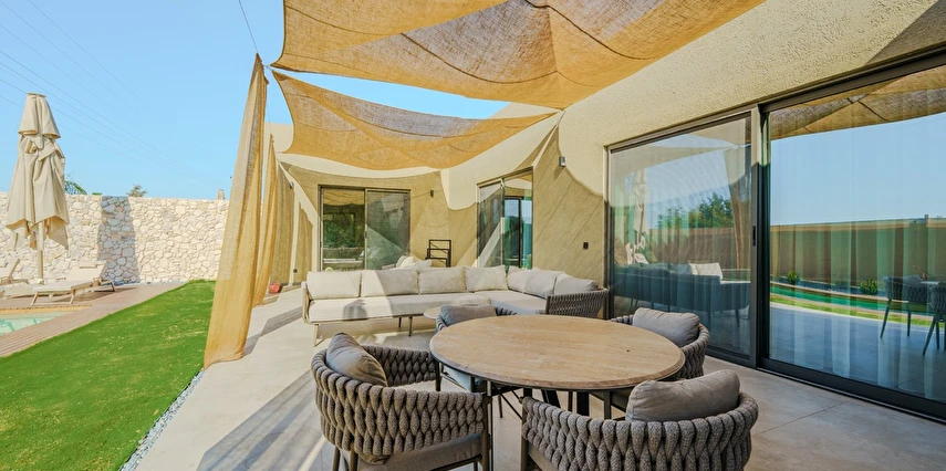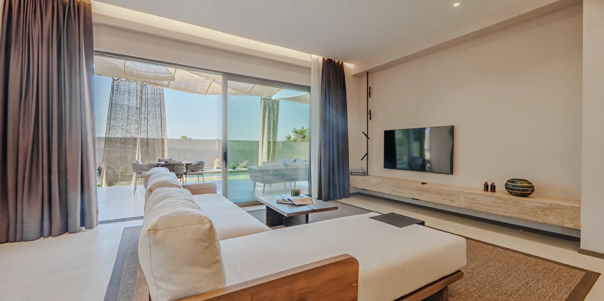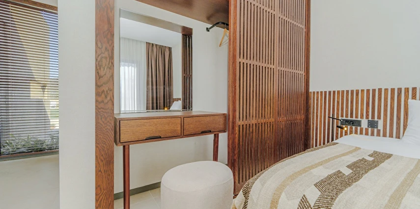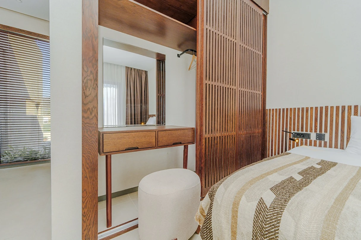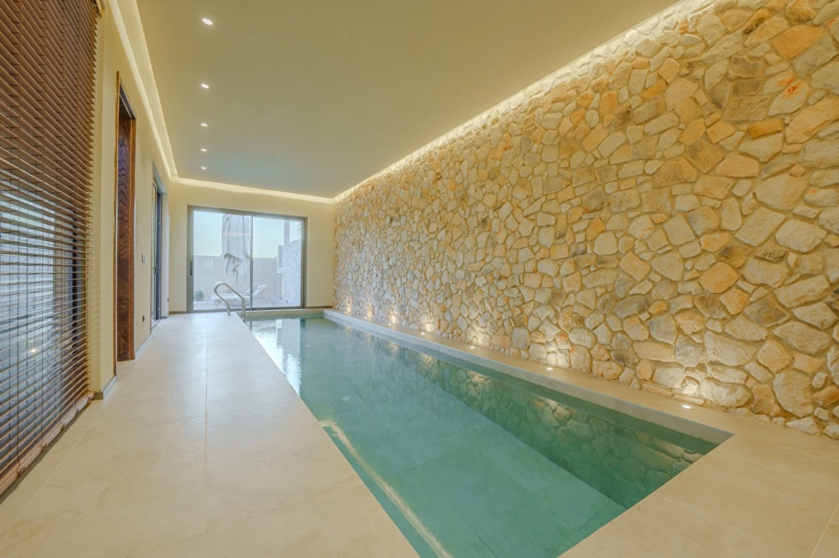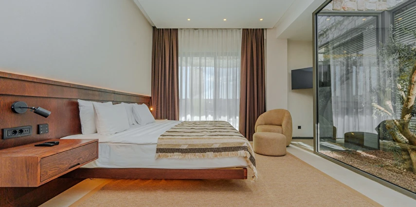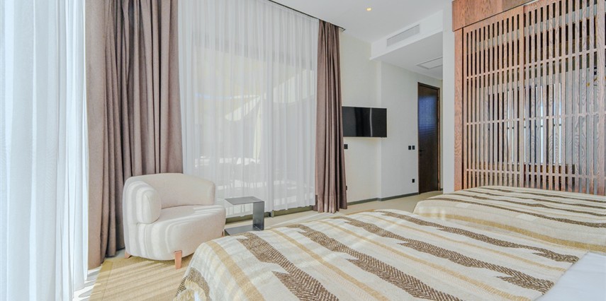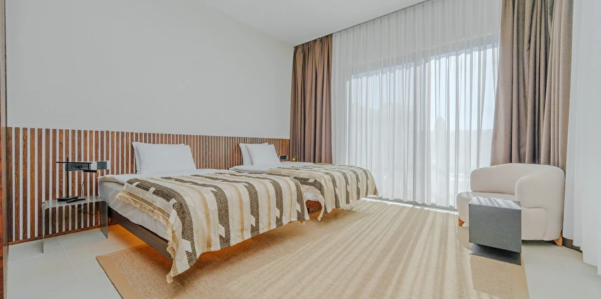 155 m² genişliğinde, 2+1 konseptli villalarımızda; ışığın gün boyu dans ettiği ferah salonlar, modern tasarımlı yatak odaları ve misafirlerimizin özel kullanımına ait ısıtmalı kapalı havuz, açık havuz, hamam, buhar odası ve sauna yer alıyor.