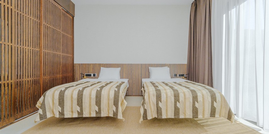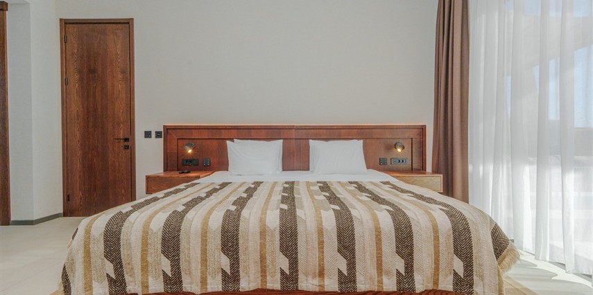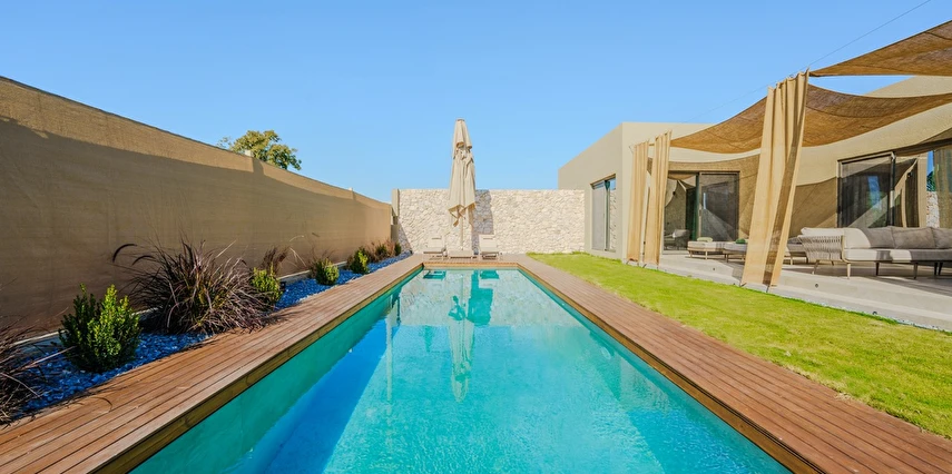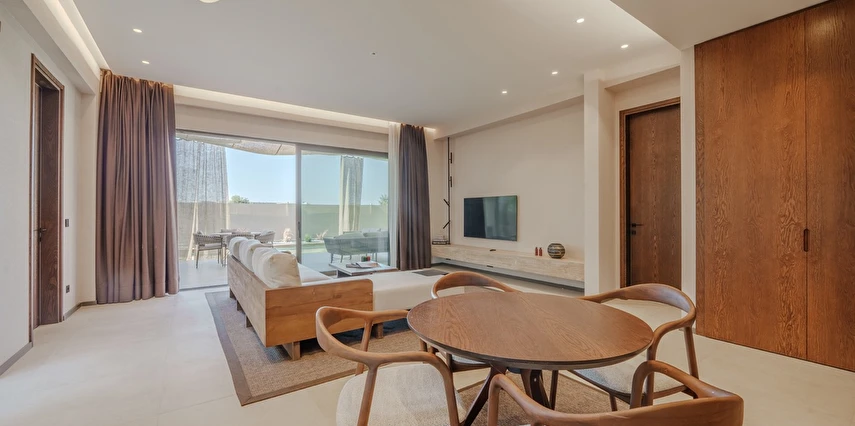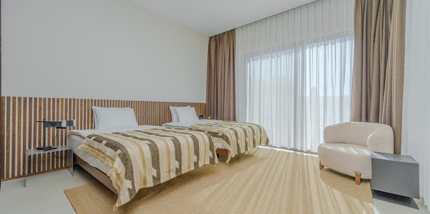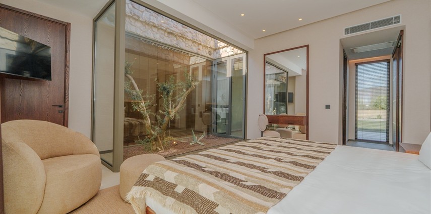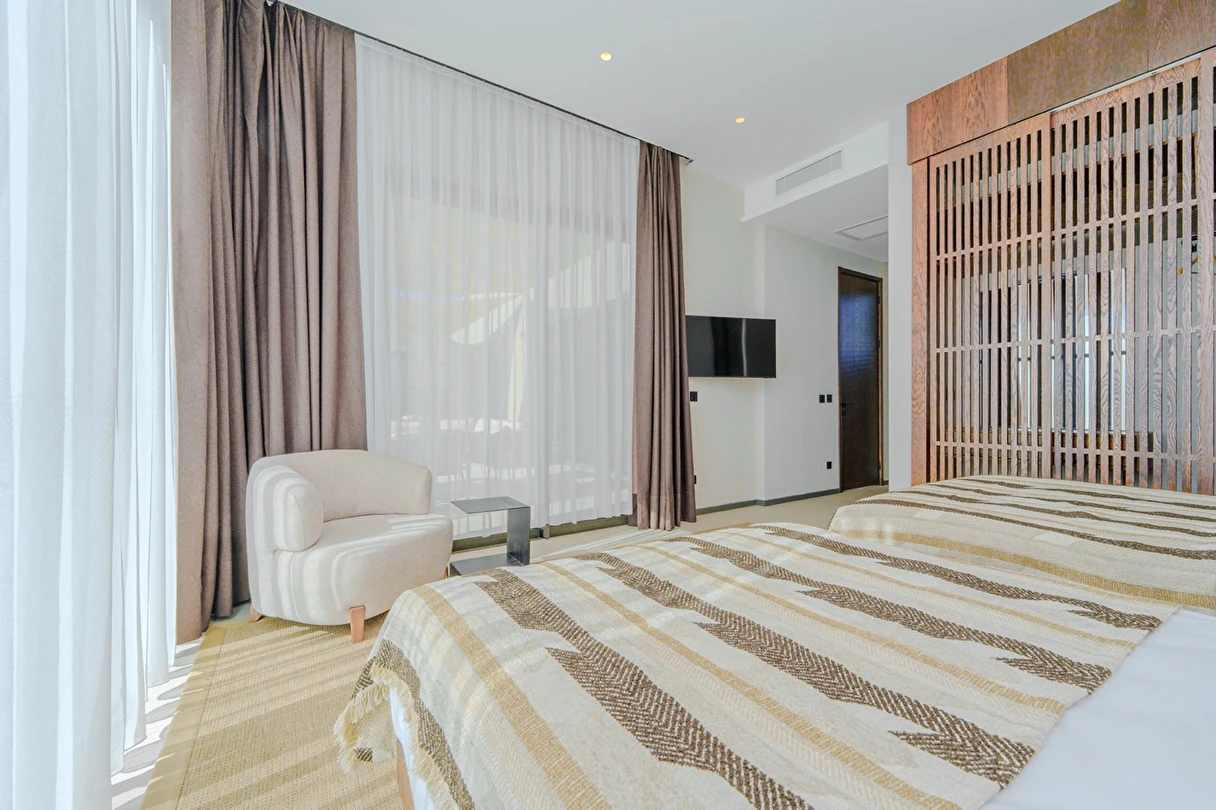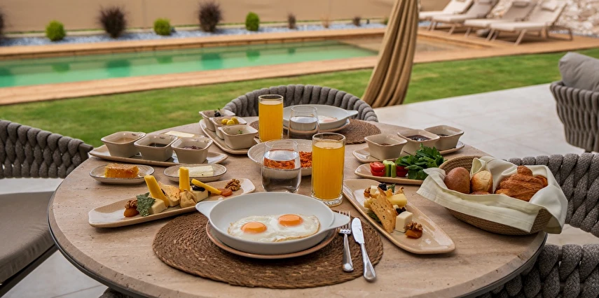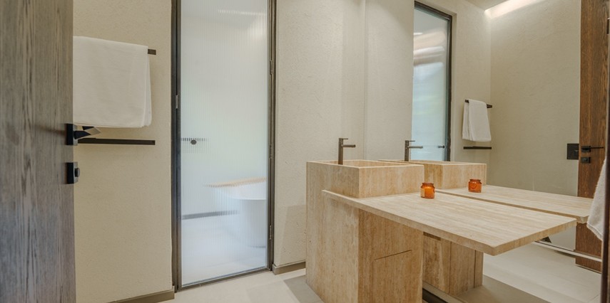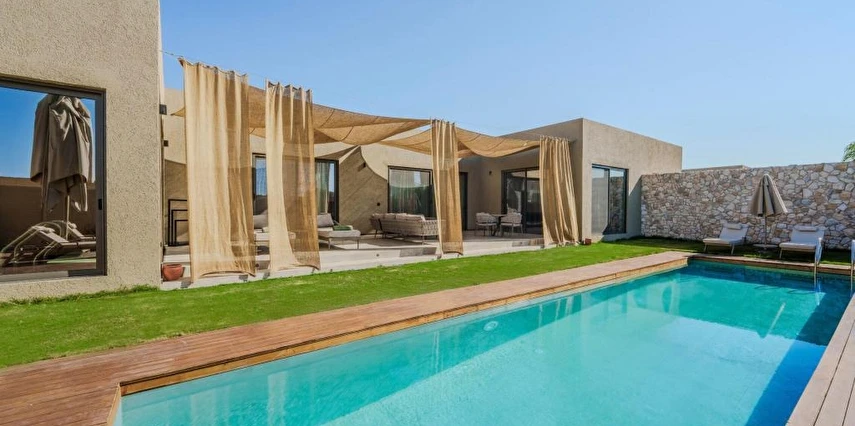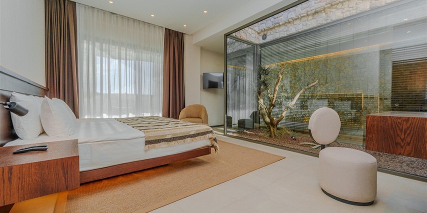 155 m² genişliğinde, 2+1 konseptli villalarımızda; ışığın gün boyu dans ettiği ferah salonlar, modern tasarımlı yatak odaları ve misafirlerimizin özel kullanımına ait ısıtmalı kapalı havuz, açık havuz, hamam, buhar odası ve sauna yer alıyor.