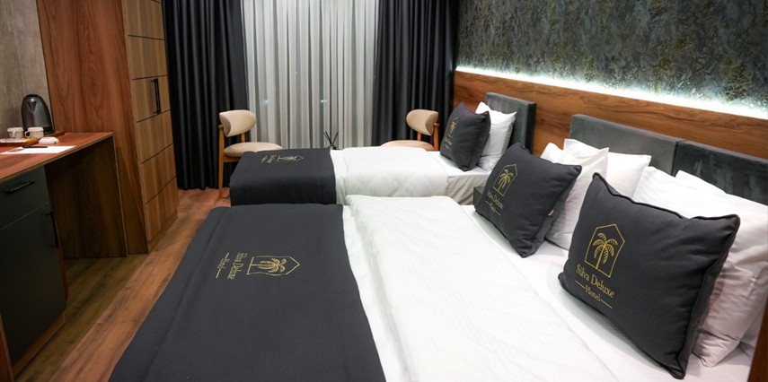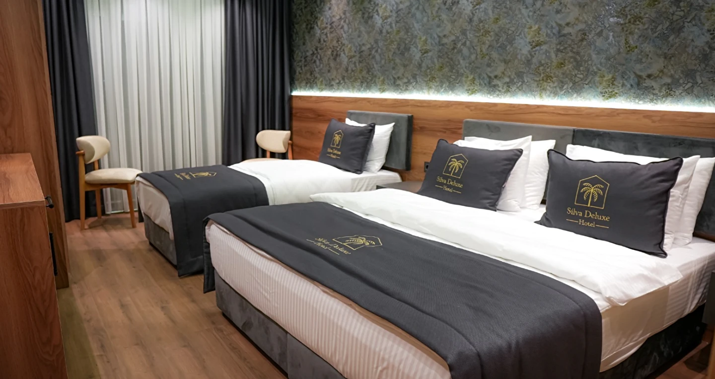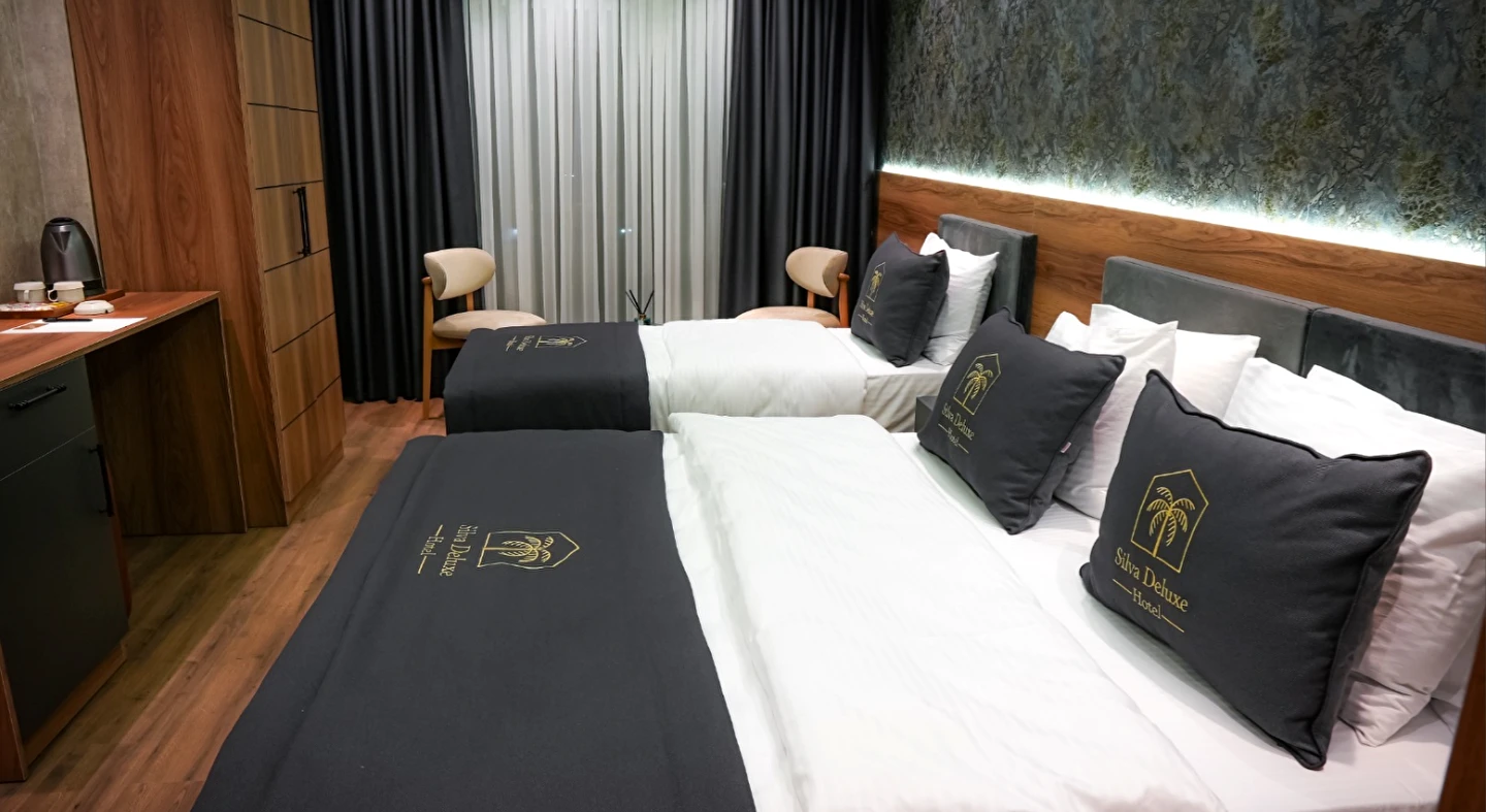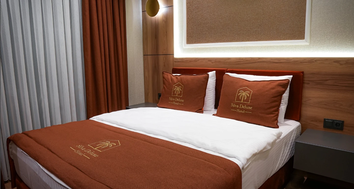 Sahile sadece 10 dakikalık yürüme mesafesinde olan otelimizde, oda + kahvaltı konseptiyle misafirlerimizi güne lezzetli ve özenle hazırlanmış bir kahvaltı ile başlatıyoruz. Silva Deluxe Hotel, şehrin stresinden uzaklaşmak, konforlu ve huzurlu bir konaklama deneyimi yaşamak isteyen herkes için ideal bir adres.