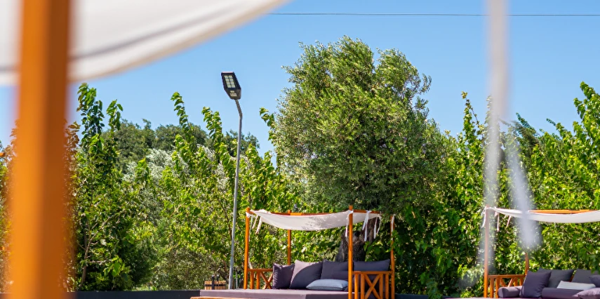 | SİMLARDA Country Club Çiftliğimiz Ayvalık’ta otelciliğin öncülerinden Berk Otelcilik ve Turizm A.Ş. tarafından işletiliyor. Aileden gelen Turizm Kültürü ve birikimiyle yıllardır doğayla bütünleşen anılarla dolu tatillere mekân olmaktan mutluluk ve gurur duyuyoruz. Tesisimizde Çiftlik Kahvaltısını sunduğumuz Taş Binamız, Ala Carte Restoranımız, konaklama için zeytin ağaçları arasında doğa içinde yer alan 50 ile 150 m2 arasında değişen 3, 4, 5, 6 ve 7 kişilik özenle döşenmiş mobilyalı, Amerikan mutfaklı villalar, özel dış mekan jakuzili villalar, apartlar ve bungalovlar bulunuyor. |