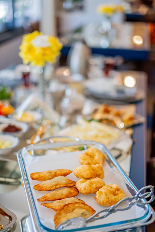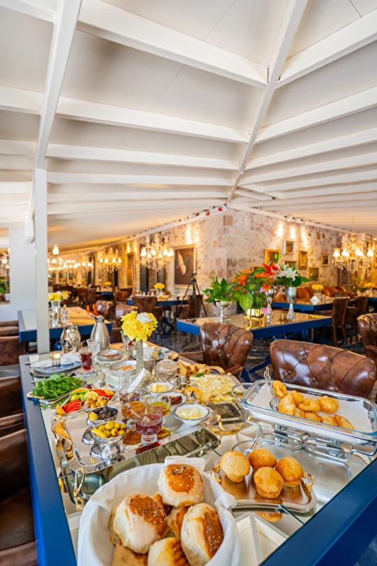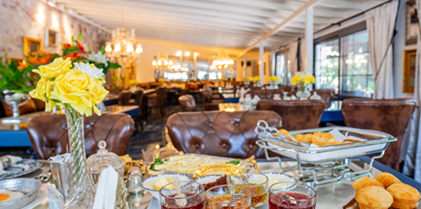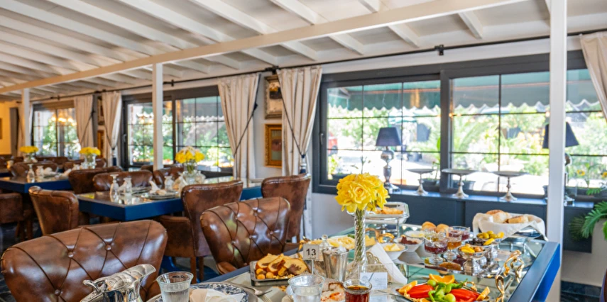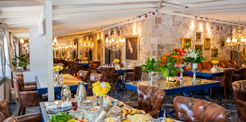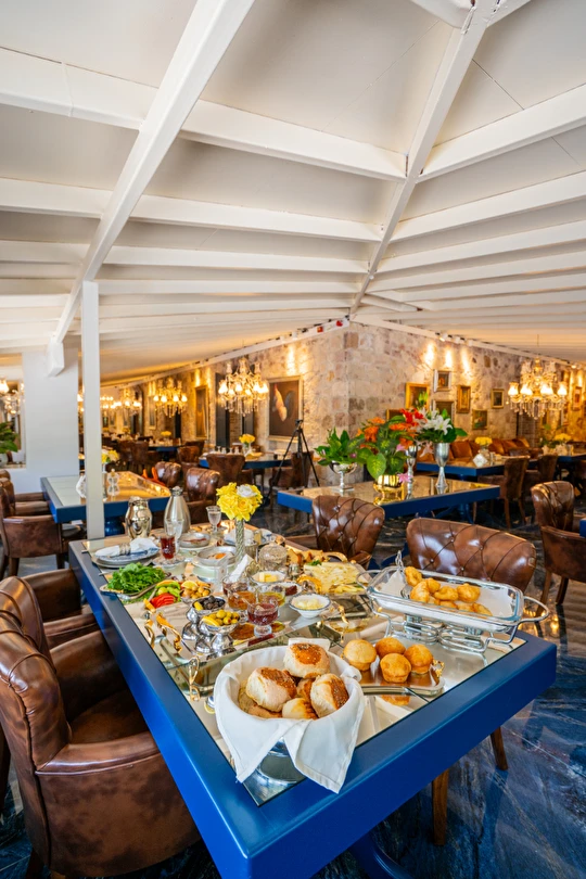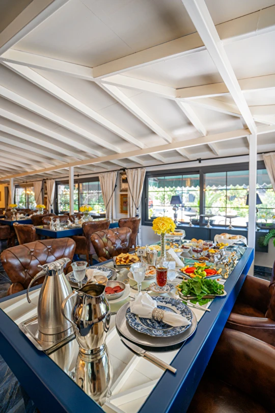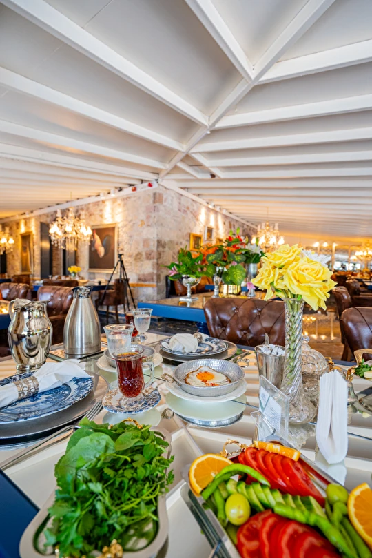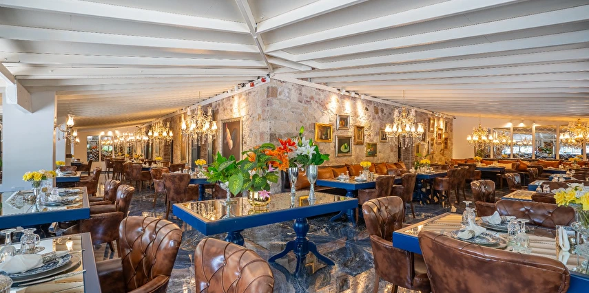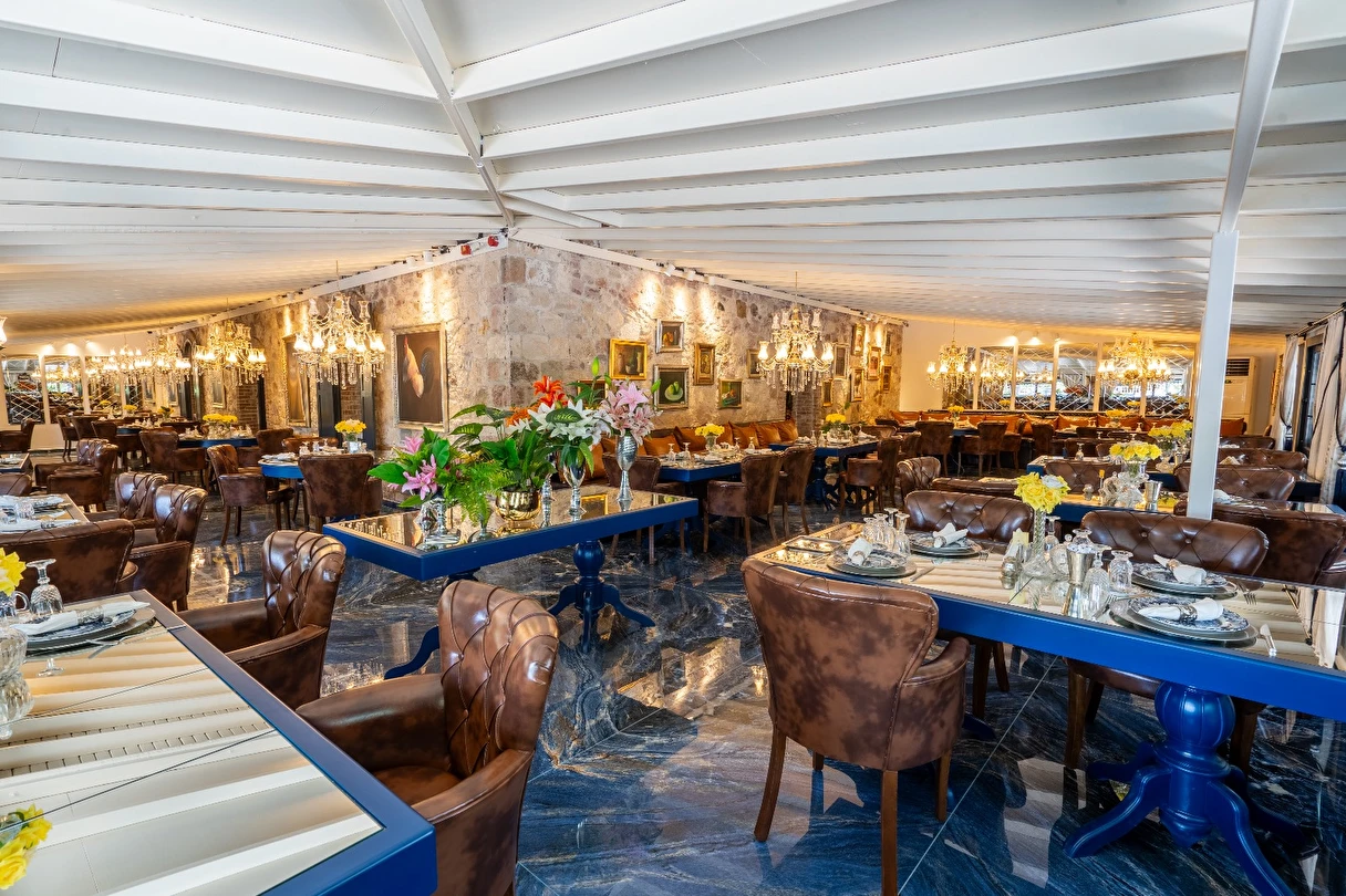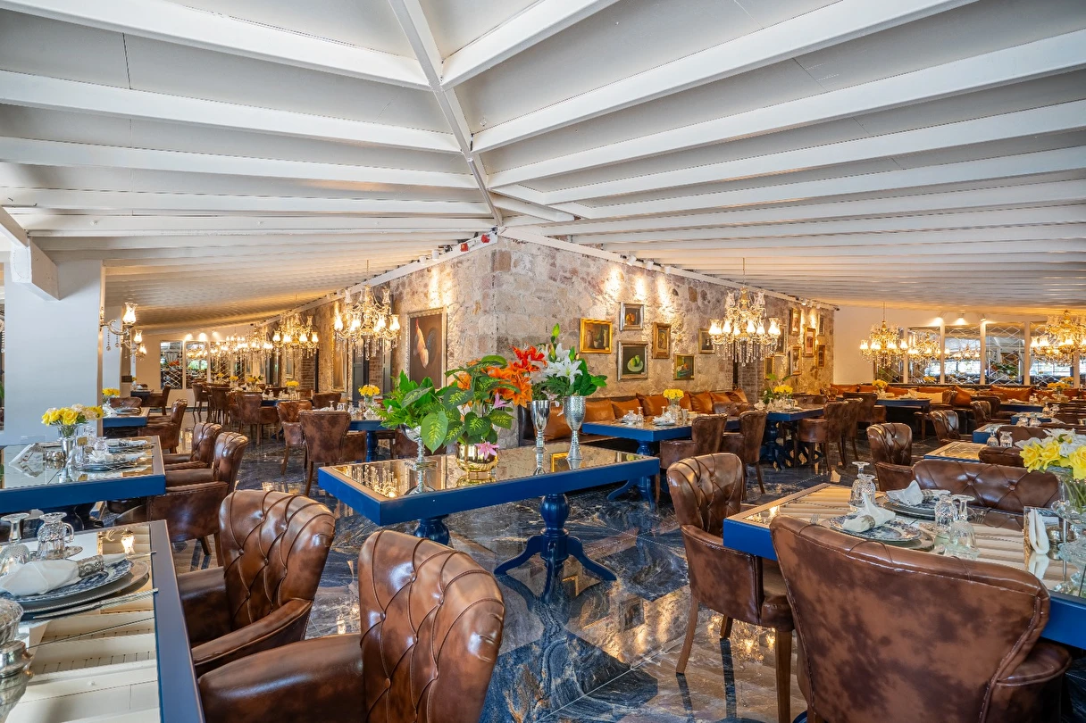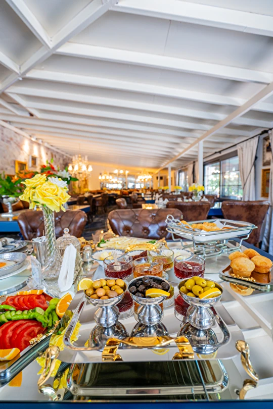 | RESTAURANT otelimiz müşterilerimize sezonda yarım pansiyon hizmet vermektedir.sabah kahvaltı saatlerimiz :09.00 -11.00 arasıdır.Akşam yemekleri 19,00-21.00 arasıdır..havuz kısmında fast -food barımız bulunmaktadır |