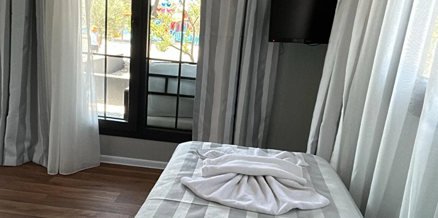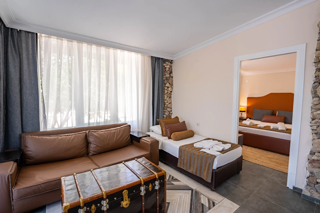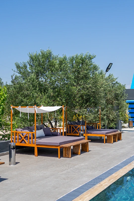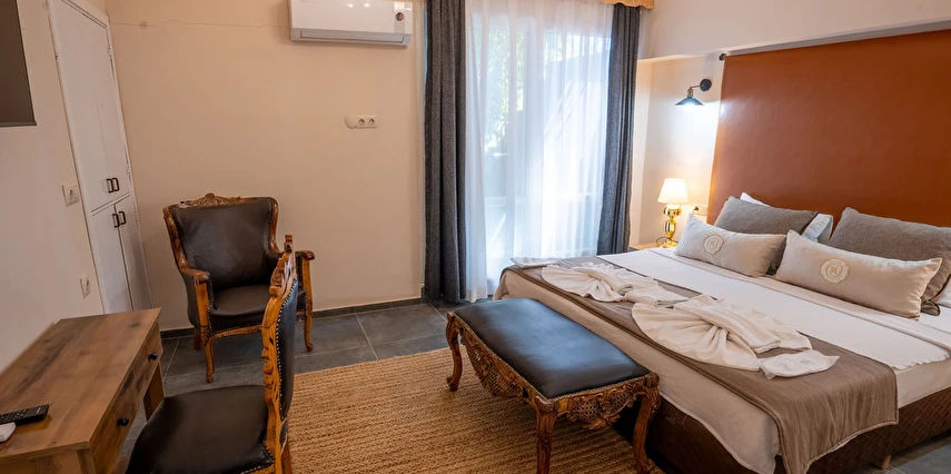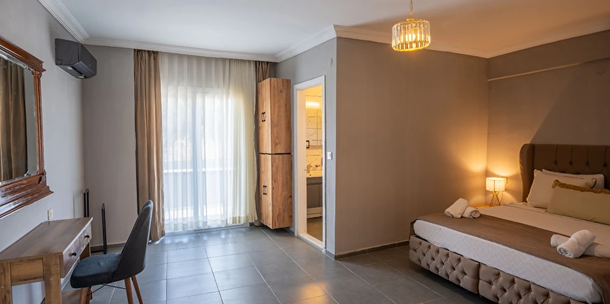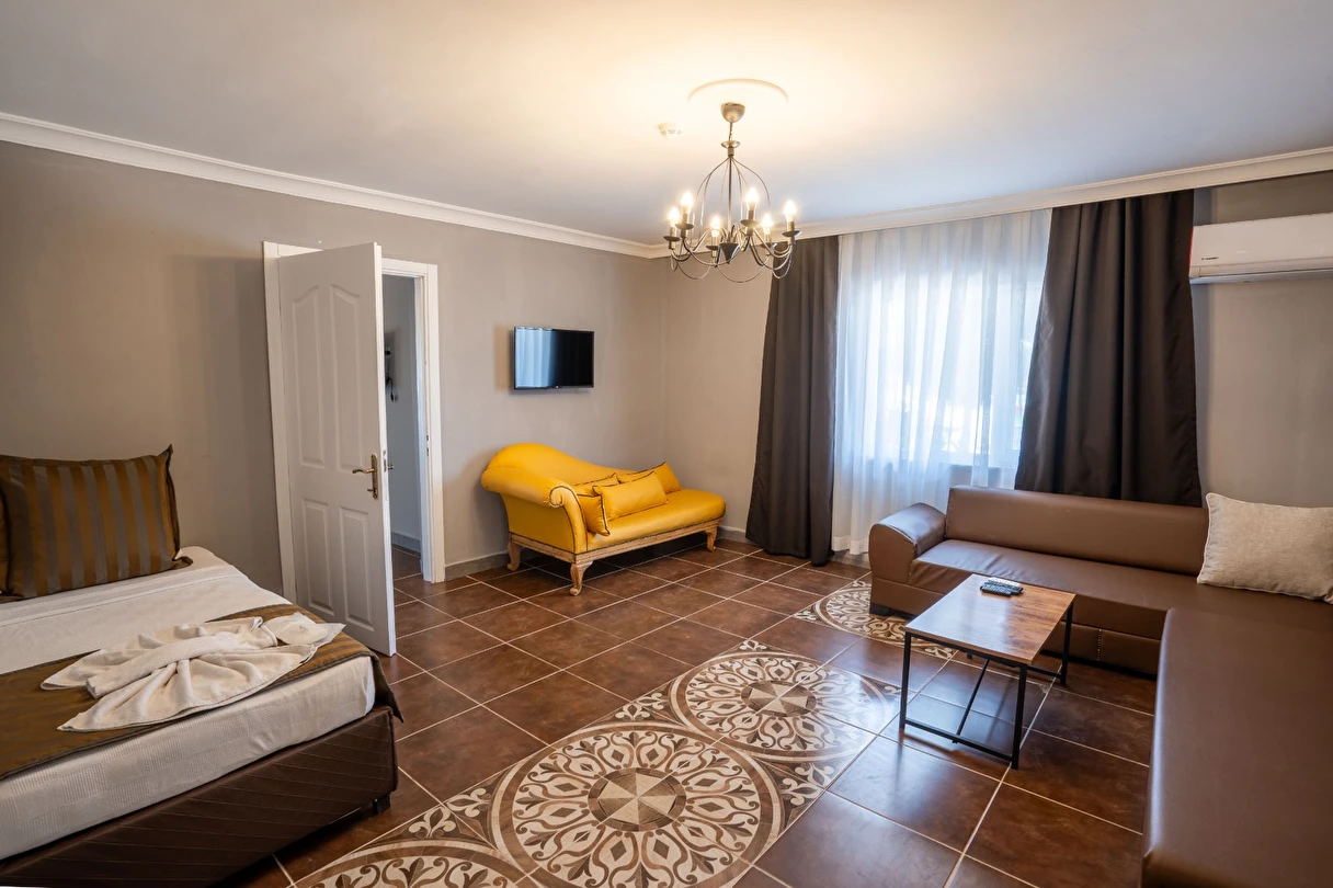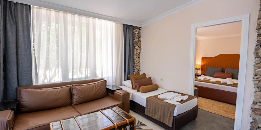 Ücretsiz şezlong ve şemsiyeli diğer otelimizin plajından özel aracınızla sadece 10 dk da ulaşarak faydalanabilirsiniz