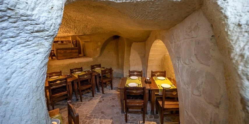 Kapadokya'nın otantik atmosferinde huzurlu bir konaklama deneyimi sunan Sinasos Palace Cave Hotel Aşk ve Mavi Konağı, Ürgüp'te misafirlerini ağırlıyor. Tesiste iki ayrı yerel mutfak bulunmaktadır.