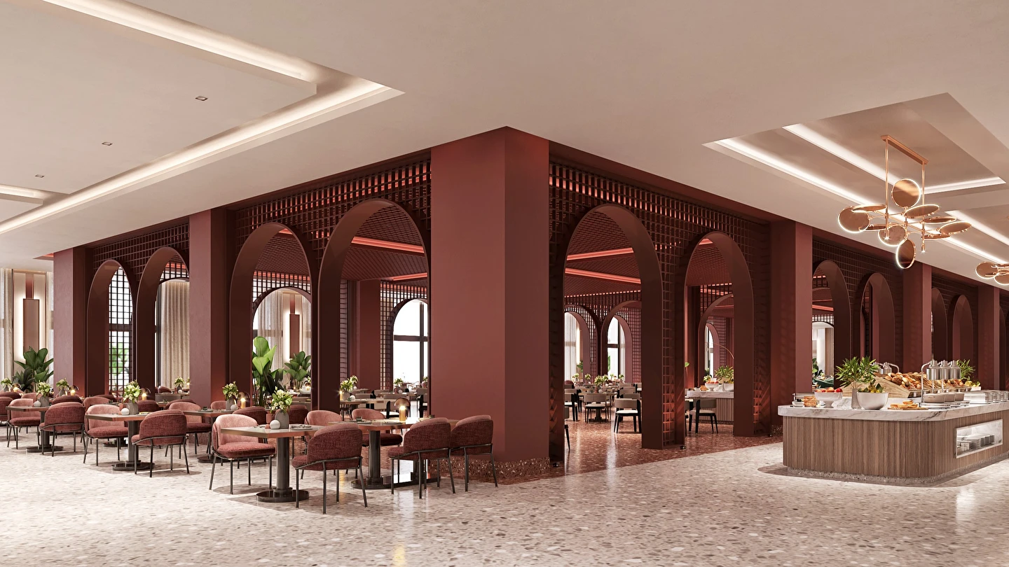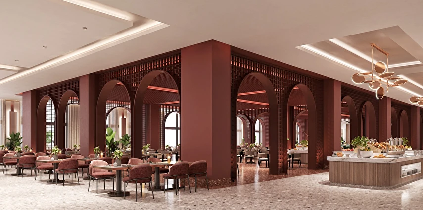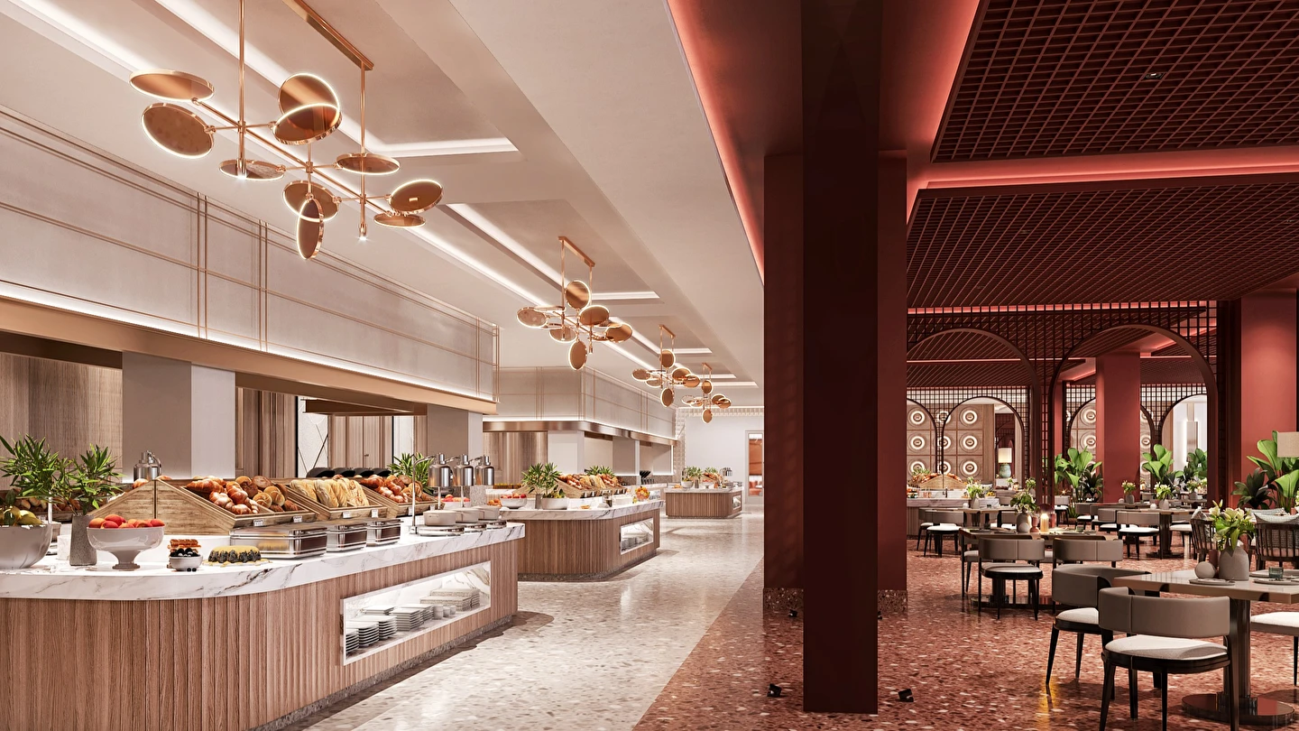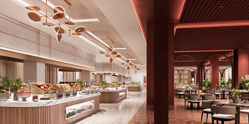 Sabah kahvaltısı, öğle yemeği ve akşam yemeği açık büfe olup, tesisin belirlemiş olduğu markalar dahilinde alkolsüz içecekler 24 saat ücretsizdir.