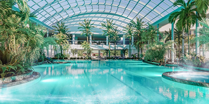 Tesiste bulunan ana havuzlar (Thermaland) ; Termal yüzme havuzu, yüzme havuzu, çocuk havuzu, jakuzili tuz havuzu, jakuzili magnezyum havuzu, jakuzili termaller, bağlantılı termal havuz, kulaç havuzu (Dış mekan) ve kumsal havuz (dönemsel) bulunmaktadır.