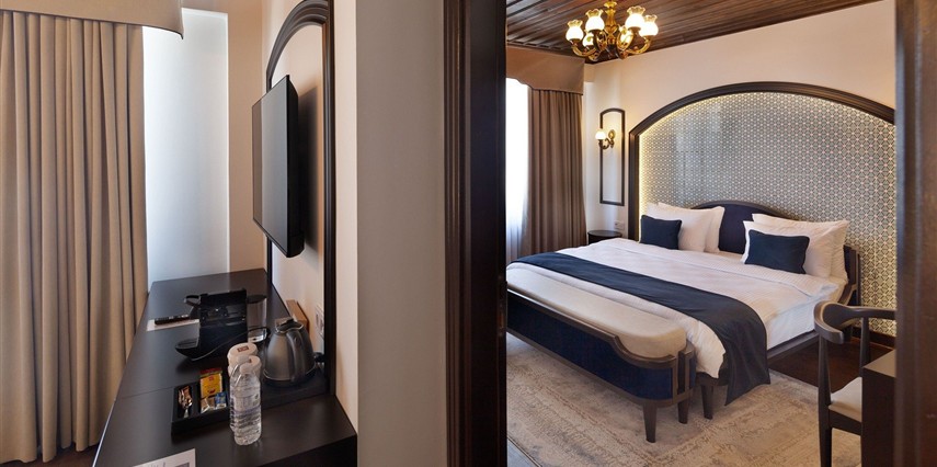 Modern tasarıma sahip odalarda konforunuz için tüm detaylar düşünülmüştür: