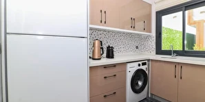 Villalarda tam donanımlı mutfak, geniş oturma alanları, konforlu yatak odaları ve özel kullanım alanları bulunur. Özel bahçe ve dinlenme alanları, misafirlere ev konforunda huzurlu bir ortam sunarken; merkezi konumu sayesinde plajlara, alışveriş noktalarına ve Antalya’nın popüler gezilecek yerlerine kolay ulaşım imkânı sağlar.