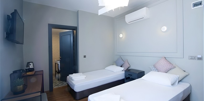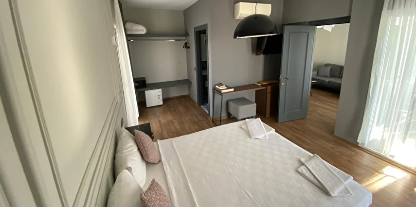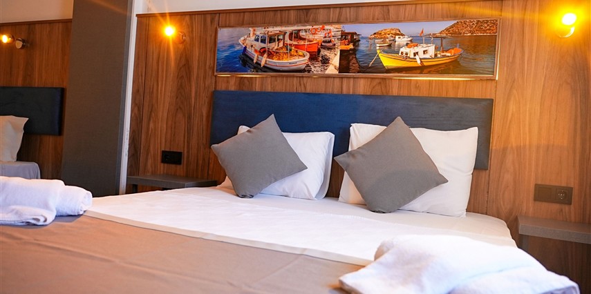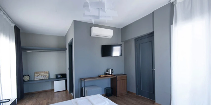 Rahatınız için her detayın özenle düşünüldüğü odalarımızda, sade ve modern dekorasyonun ferahlığını hissedersiniz.