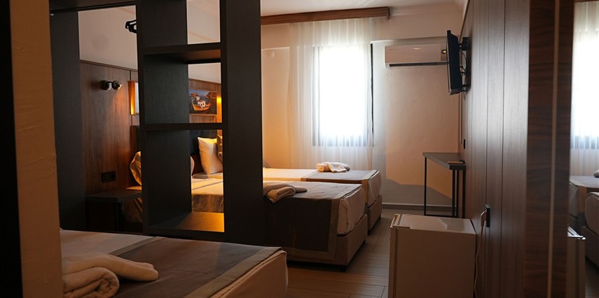 İster Deluxe, ister Standart, Promo ya da Suite Room tercih edin; her odamızda duş kabinli banyo, mini bar, kasa, TV, saç kurutma makinesi ve parke zemin gibi tüm olanaklar mevcuttur.