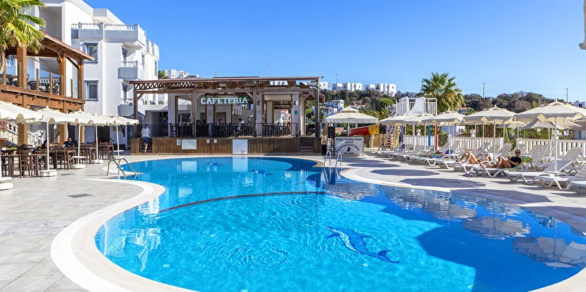 - Tesisin özel plajı bulunmamaktadır. Misafirler 200 m uzaklıktaki halk plajından yada özel işletilen plajlardan yararlanabilir. Plajda alınan tüm hizmetler (şezlong, şemsiye, minder, yiyecek içecek) ücretlidir. Kum çakıl şeklindedir.