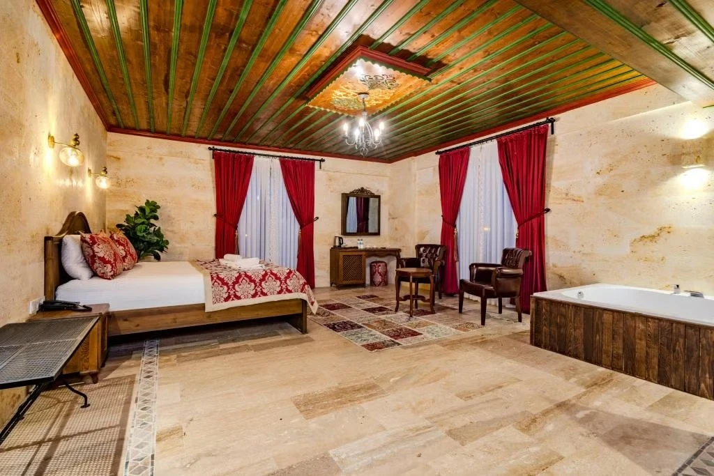 Her biri özenle dekore edilmiş odalarımızda, Kapadokya’nın mistik atmosferini hissederken üst düzey konforun keyfini çıkarabilirsiniz. Taş mimarinin sıcaklığı, zarif detaylar ve sakin bir ambiyans ile birleşerek unutulmaz bir konaklama sunar.