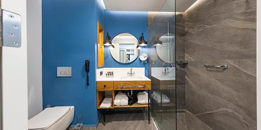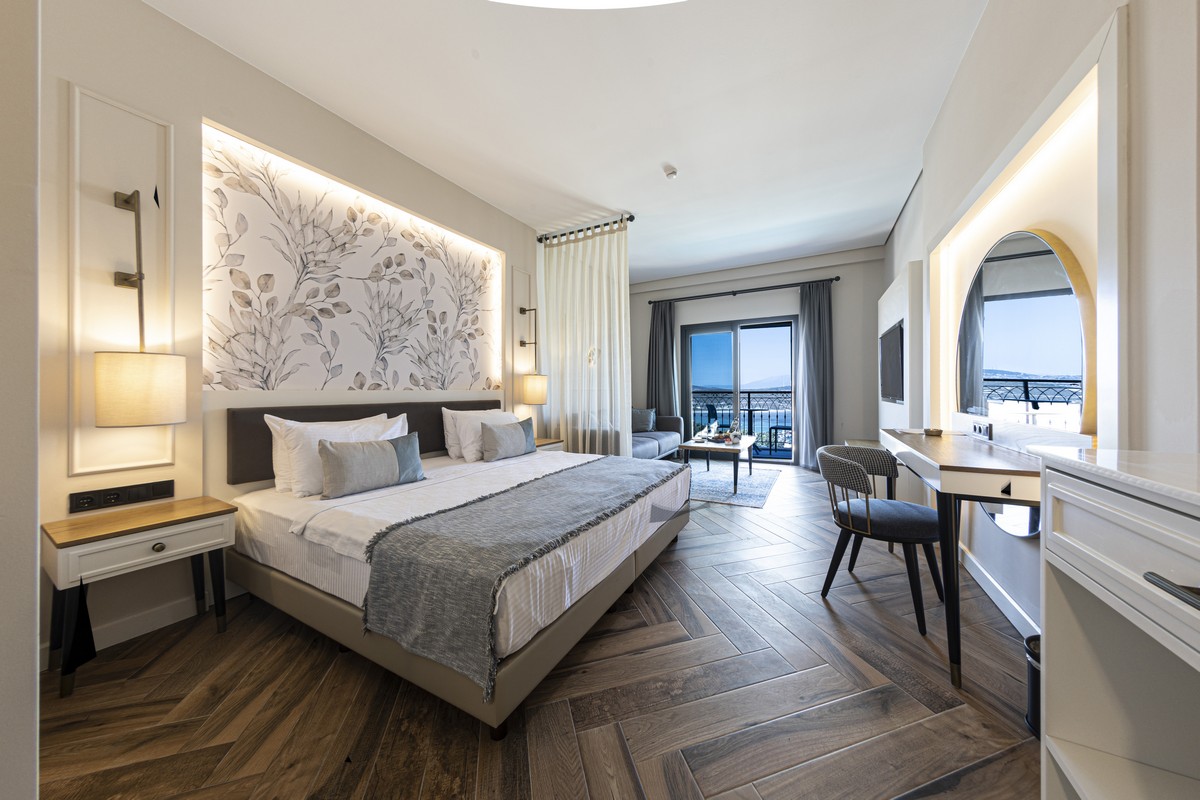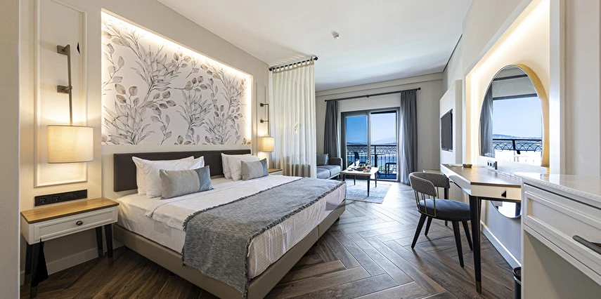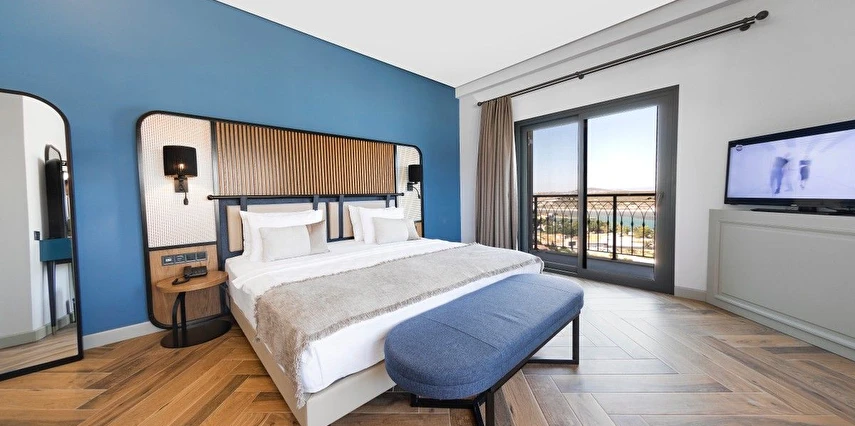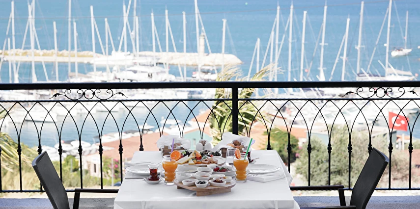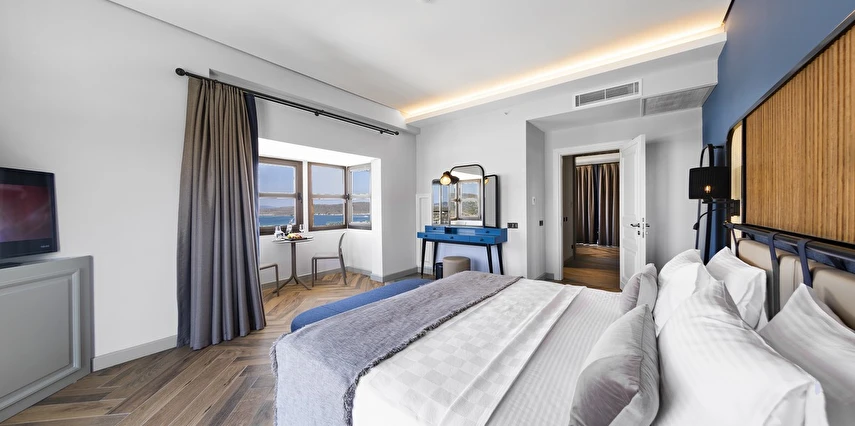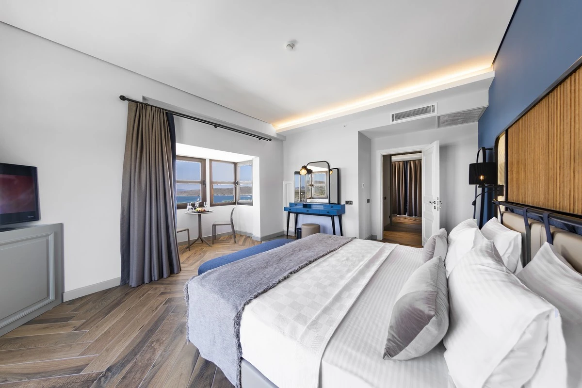 Konfor ve huzurun birleştiği, deniz manzaralı, sade fakat şık odalarında günün yorgunluğunu atabileceksiniz.