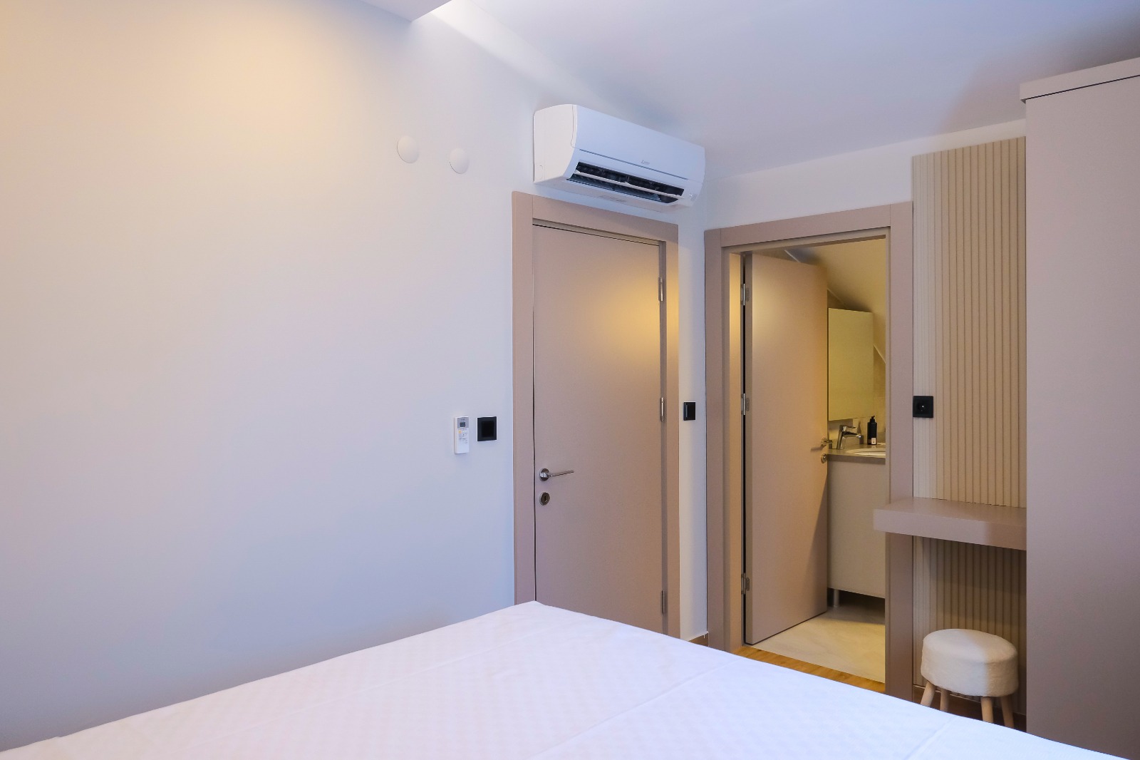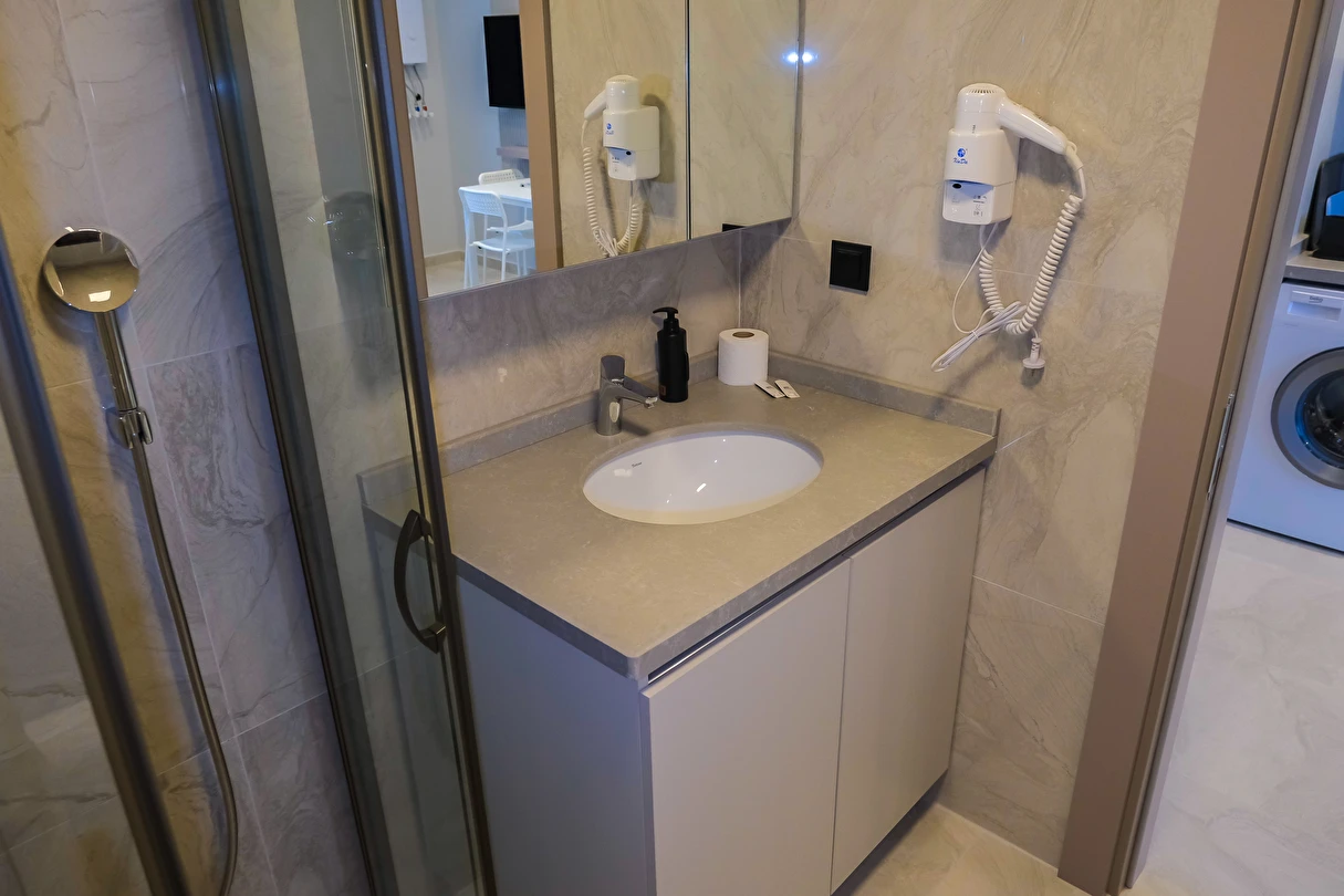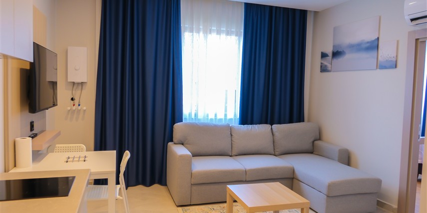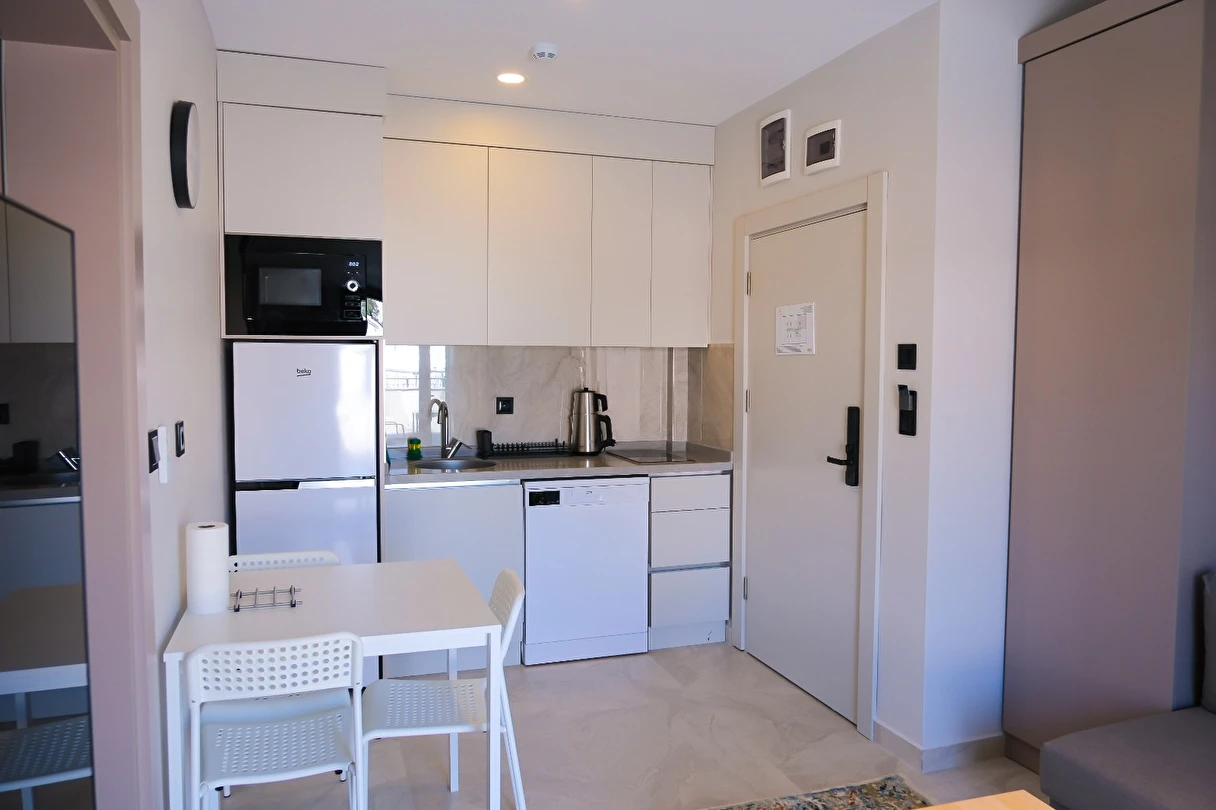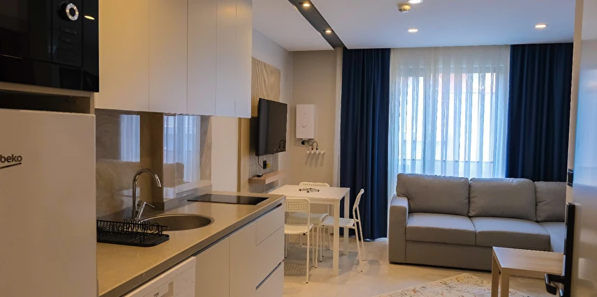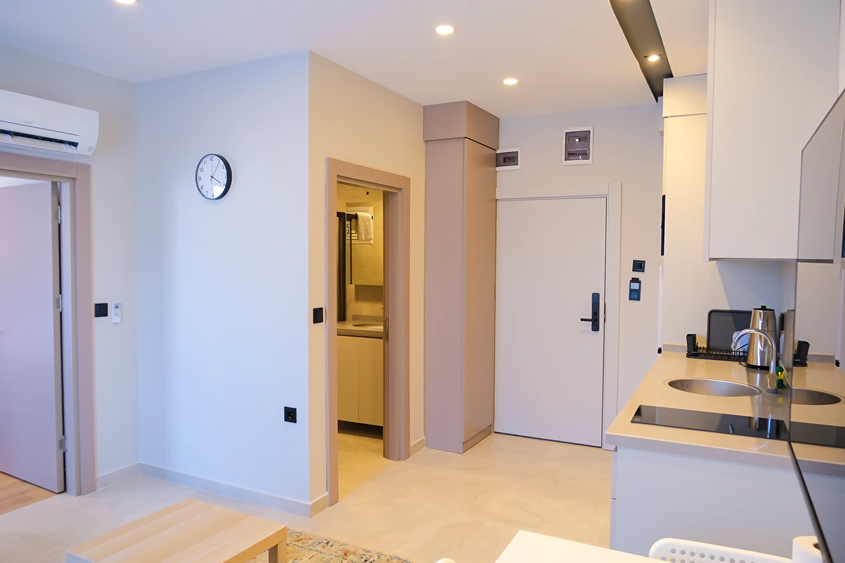 Antalya’nın gözde bölgesi Konyaaltı’nda yer alan bu yepyeni ve modern 1+1 suit dairemiz, hem konforu hem de sade şıklığıyla size evinizde gibi hissettirecek. Denize yalnızca birkaç dakikalık yürüme mesafesindesiniz.
