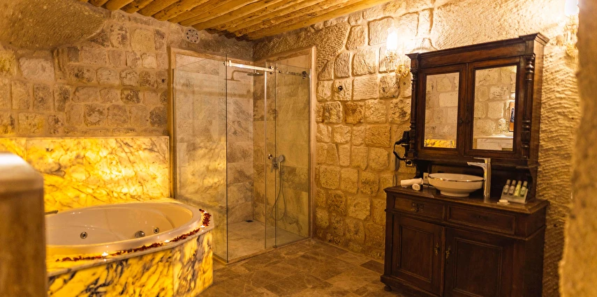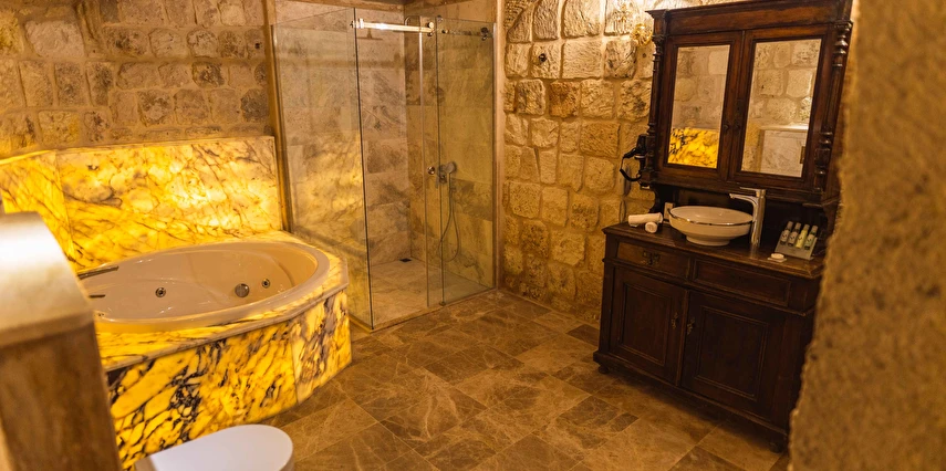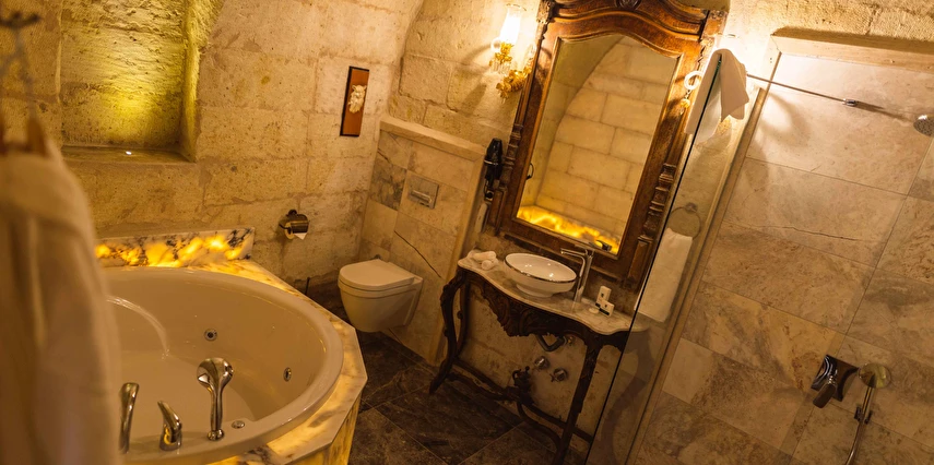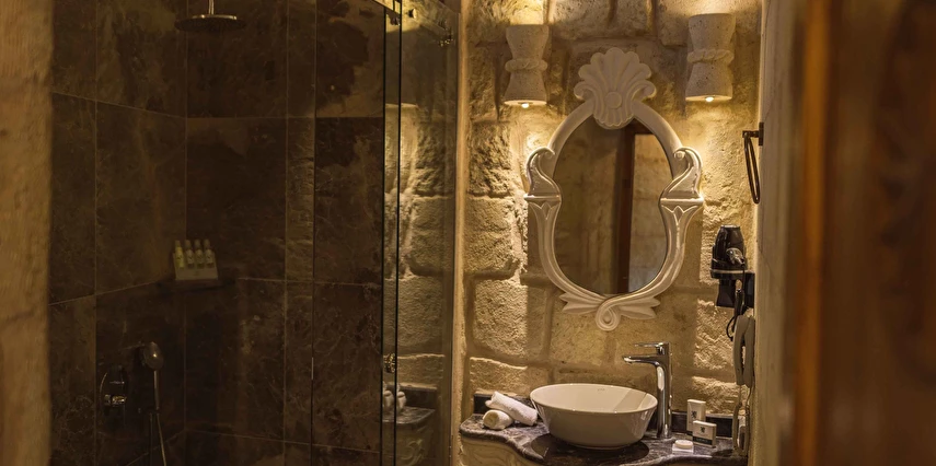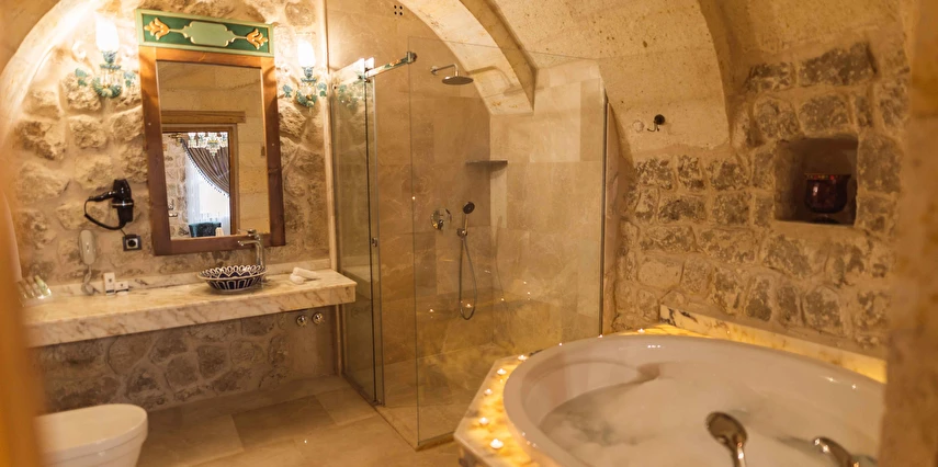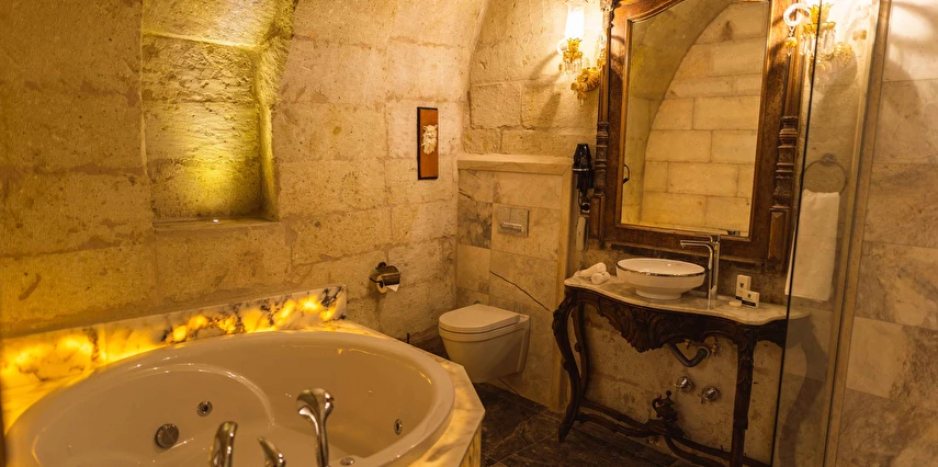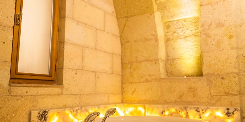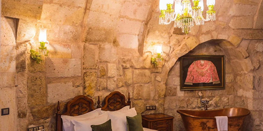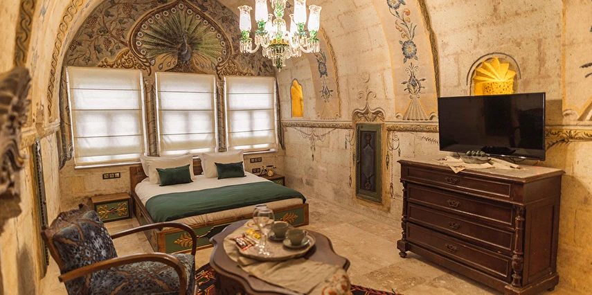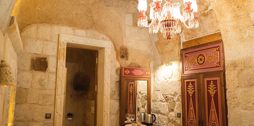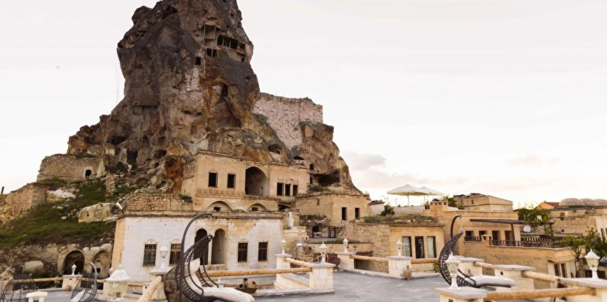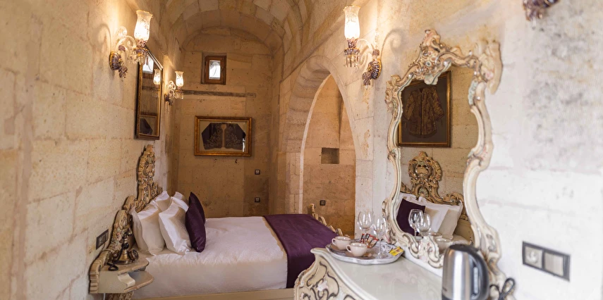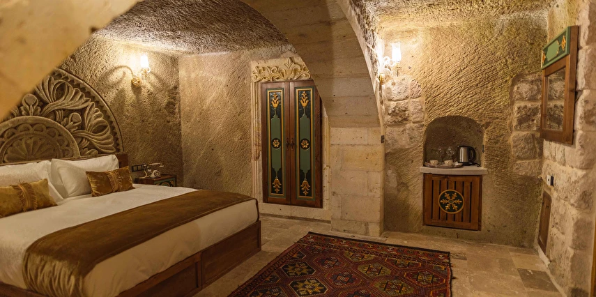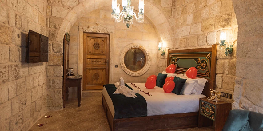 Kapadokya’nın büyüleyici atmosferinde misafirlerini ağırlayan Solo Cave Suites, sadece 14 misafir odası ile unutulmaz bir tatil imkanı sunuyor. Tesis, balayı çiftleri için özel oda süslemesi ve meyve tabağı ikramı sunuyor. Kapadokya’da Ortahisar Kalesi'nin hemen yanı başında yükselen Erciyes Dağı’nın eşsiz manzarası eşliğinde unutulmaz bir tatil deneyimi yaşatan Solo Cave Suites, misafirlerine keyifli bir tatil deneyimi yaşatıyor. Mevsim ve şartlara göre kale etrafında gökyüzüne süzülen balonları izleyebilir ve muhteşem manzaranın fotoğrafını çekebilirsin. Dünyanın ilk çok katlı yerleşim yeri olarak bilinen Ortahisar Kalesi'nin hemen yanında yer alan, Erciyes Dağı manzarasına sahip Solo Cave Suites, misafirlerine keyifli bir tatil deneyimi yaşatıyor. Mevsim ve şartlara göre kale etrafında uçan sıcak hava balonlarını izlemek tatilinize ayrıcalık katabilir. Kapadokya’nın muhteşem doğası eşliğinde hizmet veren tesis, sadece 14 misafir odası ile huzur dolu bir konaklama imkanı sunuyor. Tesis muhteşem konumuyla, konaklayan tüm misafirlerine Ortahisar kasaba meydanına kolay ulaşım ve kasaba kültürünü tanıma şansı sunuyor. Kapadokya’nın en özel noktalarından Ortahisar Kalesi’nin hemen yanında yer alan Solo Cave Suites, eşsiz vadi panoramasına ve dünyaca ünlü Erciyes Dağı manzarasına hakim konumuyla dikkat çekiyor.
