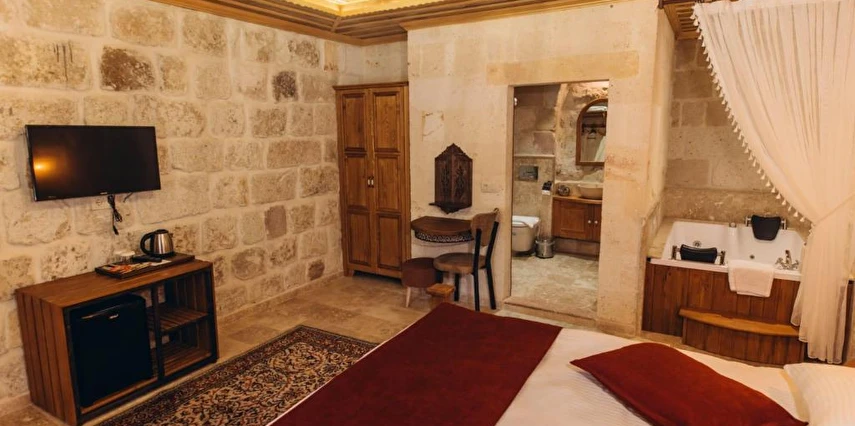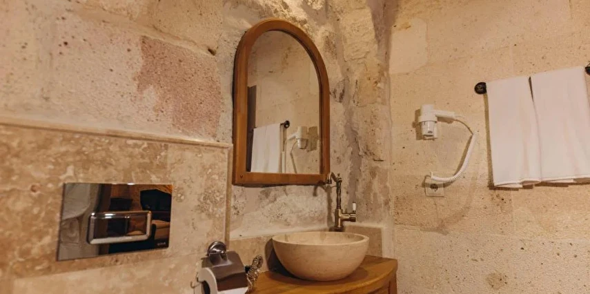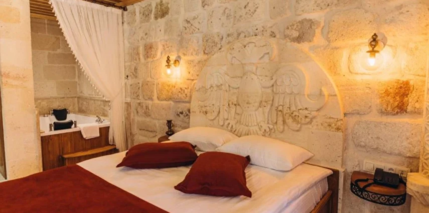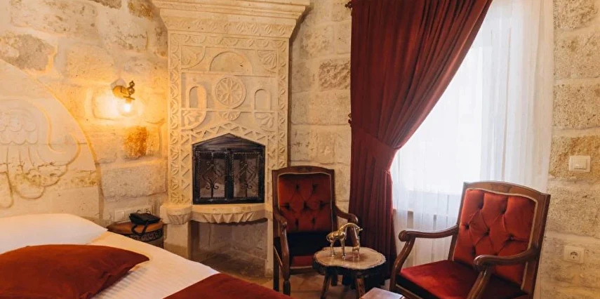 Geleneksel Kapadokya mimarisinin zarafetiyle modern konforun mükemmel bir uyum içinde buluştuğu otelimizde, her detayda özenle düşünülmüş 8 odamız sizi bekliyor. Her odamızda rahatınız ve konforunuz için özel olarak tasarlanmış detaylar bulunuyor. Doğal kapadokya mimarisine uygun süslenmiş odalarımızda Kapadokya'nın mistik havasını hissedecek, modern olanaklarımızla konforunuzun keyfini çıkaracaksınız.