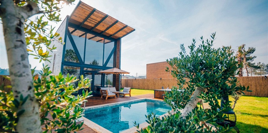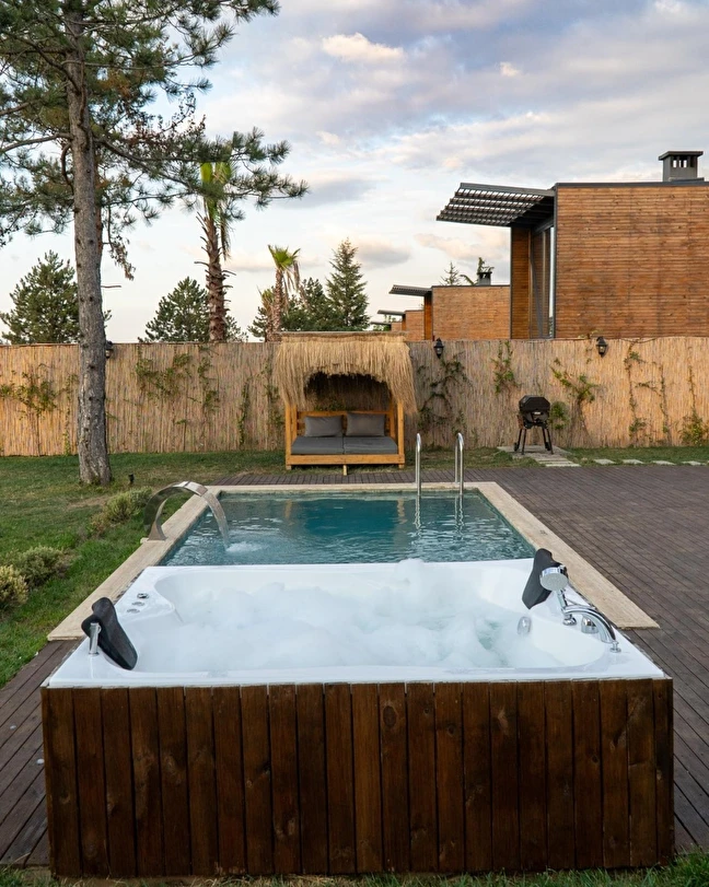 Daha Fazla GösterSapanca Gölü’nün eşsiz manzarasına karşı konumlanmış Stay in Sapanca, misafirlerimize konfor, huzur ve doğayla iç içe bir tatil deneyimi sunar. Modern yaşamın ayrıcalıklarını doğanın kalbinde bir araya getiren tesisimiz, unutulmaz anılar biriktirmeniz için tasarlanmıştır. Tesisimizde, 1+1 ve 2+1 seçenekleriyle toplamda 6 adet ev bulunmaktadır. Aileler ve arkadaş grupları için ideal olan evlerimiz, göl manzarası ve konforlu detaylarıyla keyifli bir konaklama sunar. Isıtmalı havuz, jakuzi, barbekü alanı ve restoran hizmeti gibi olanaklarımızla misafirlerimize benzersiz bir tatil deneyimi yaşatmayı hedefliyoruz. Stay in Sapanca, doğayla uyumlu bir yaşam alanı olarak, misafirlerine huzur dolu bir atmosfer sunar.
