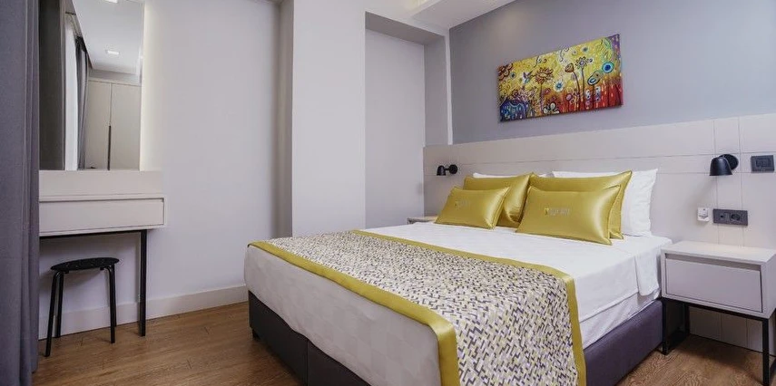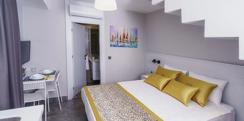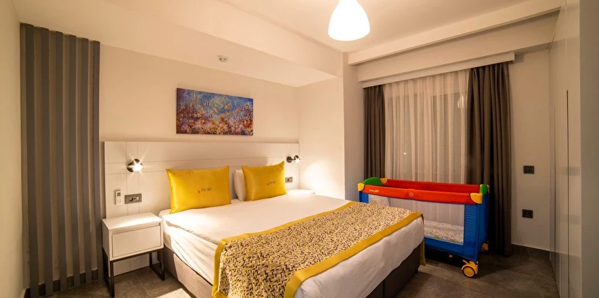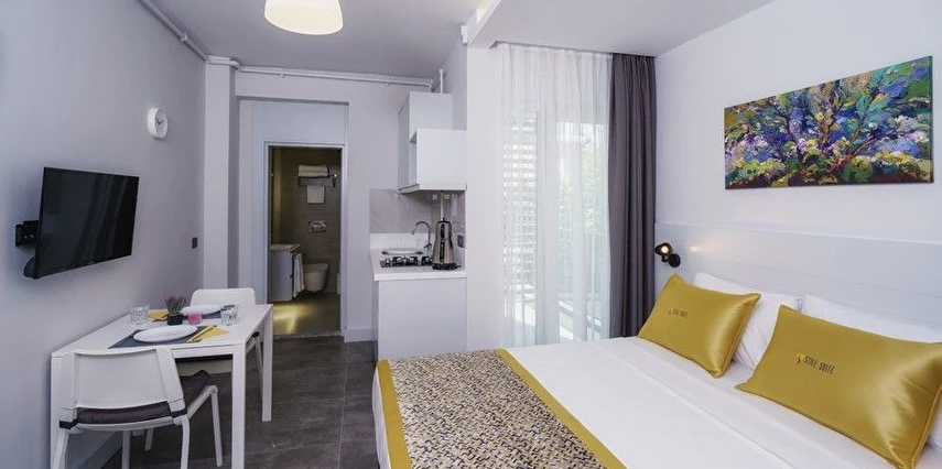 Suit odamızı sizi masmavi denize ve sıcacık kumsala kavuşturabilecek, kaliteli restoran, cafe ve alışveriş merkezlerine yakın bir lokasyonda inşa ettik. Uyurken ve dinlenirken dinlenebileceğiniz, gürültülü eğlence mekanlarından korunaklı bir lokasyondayız.