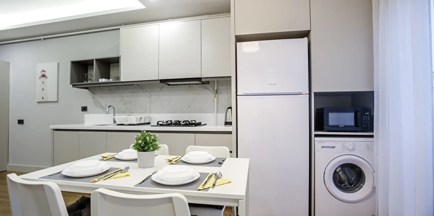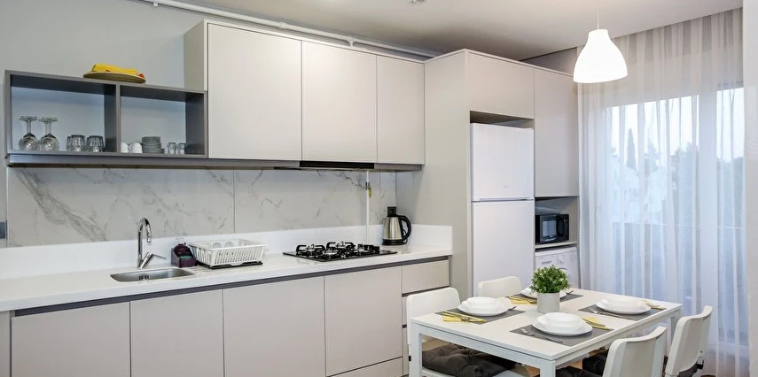 Oteldeki tüm dairelerde mutfak malzemeleri bulunuyor. Özellikle aileler için uygun olan süitlerde buzdolabı, bulaşık makinesi ve yemek masası gibi eşyalar bulunuyor. Tatiliniz boyunca kendi yemeğinizi pişirebilir ya da dışarıdan ısmarlamayı tercih edebilirsiniz.