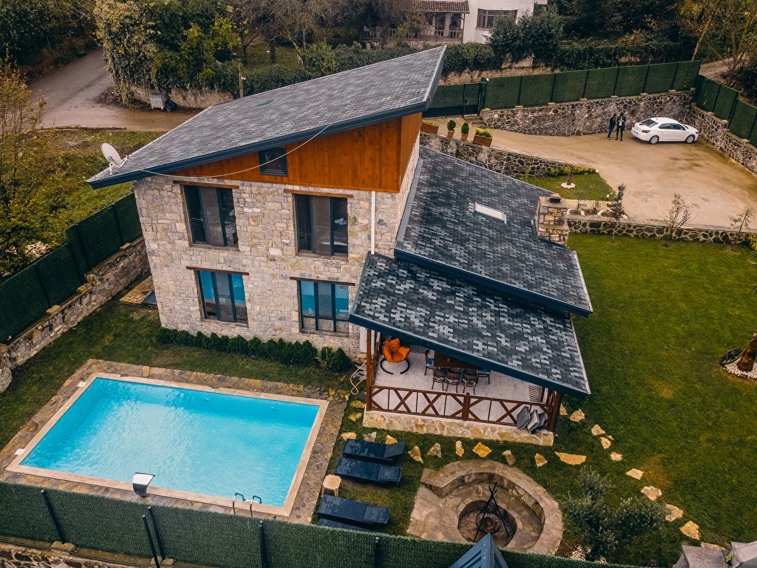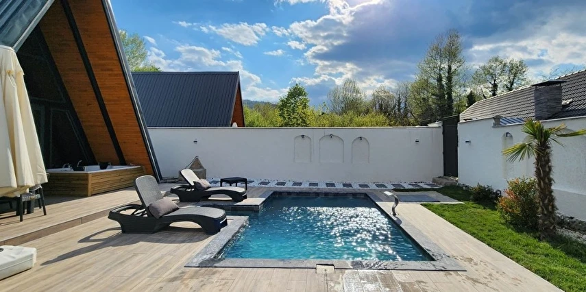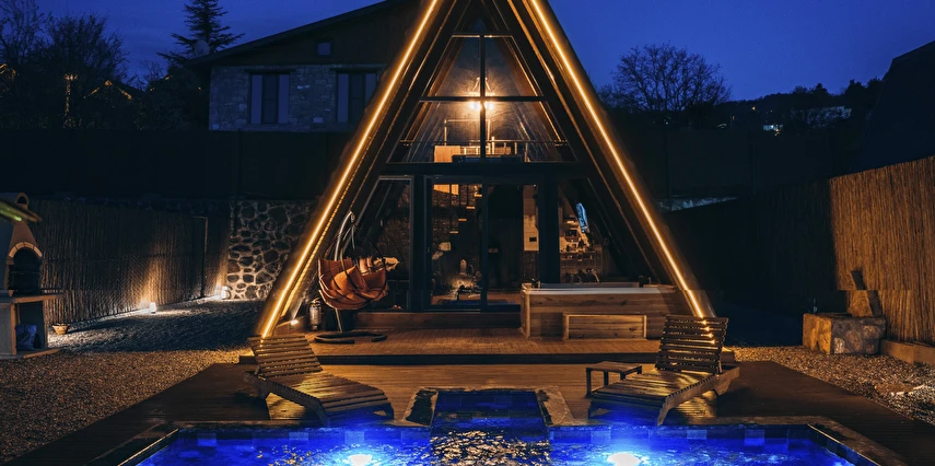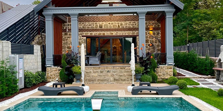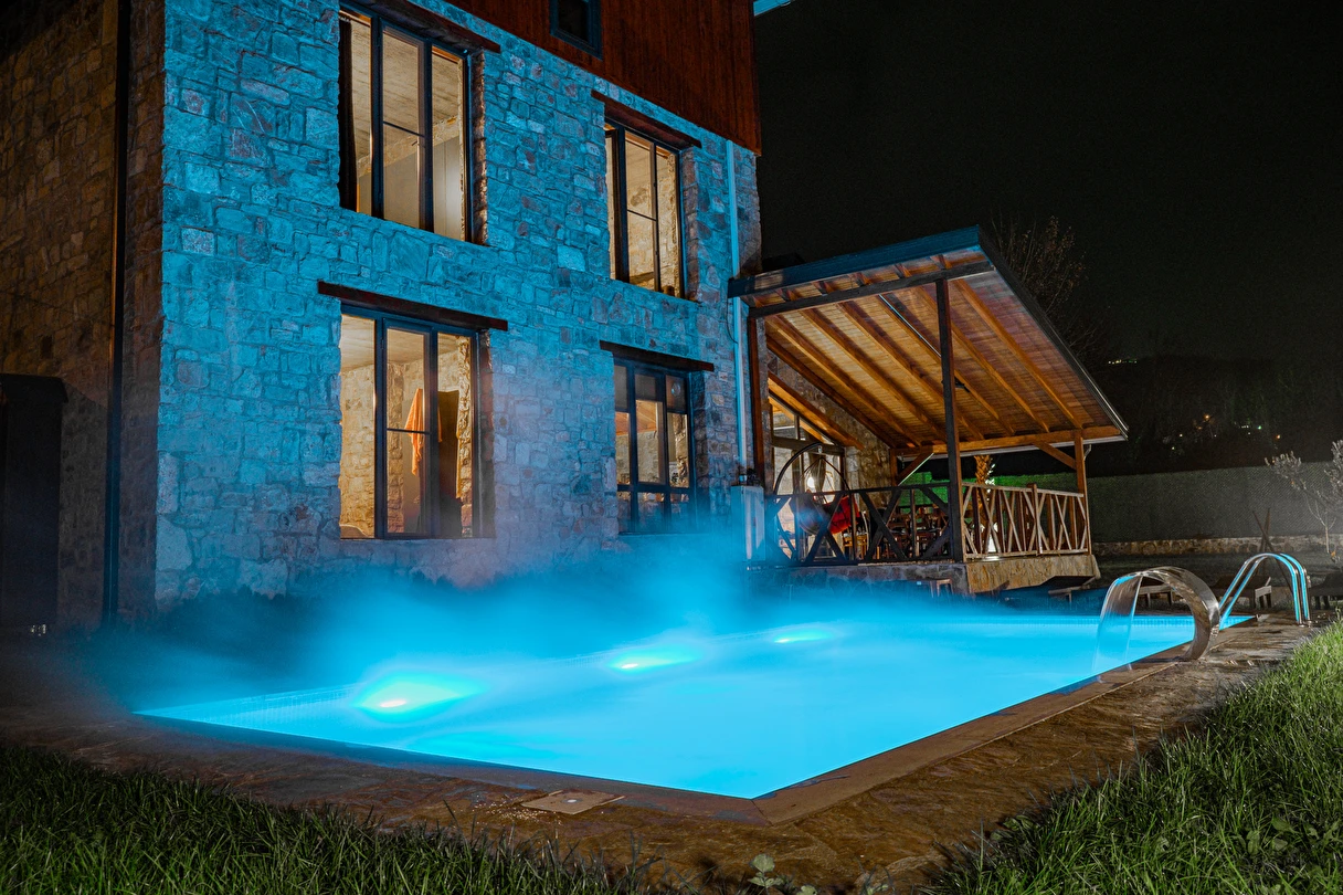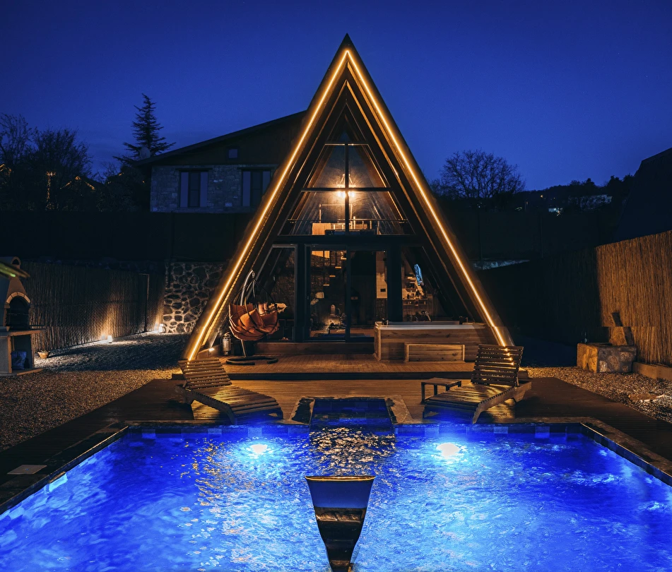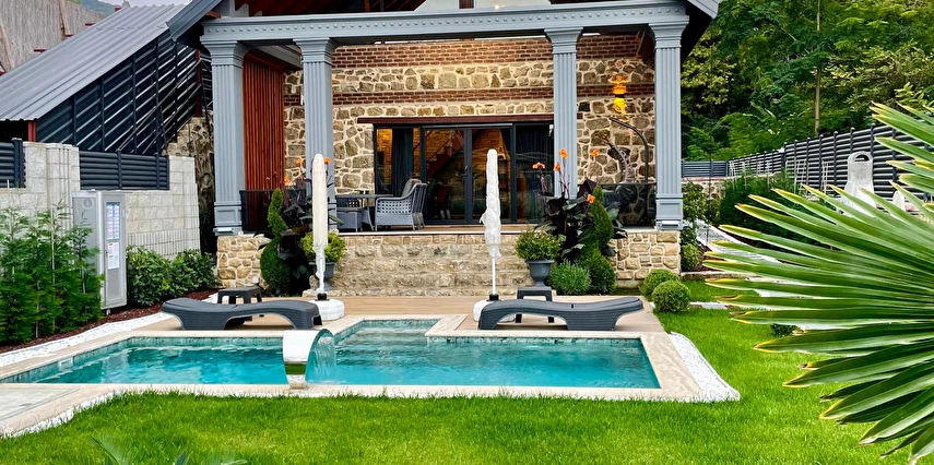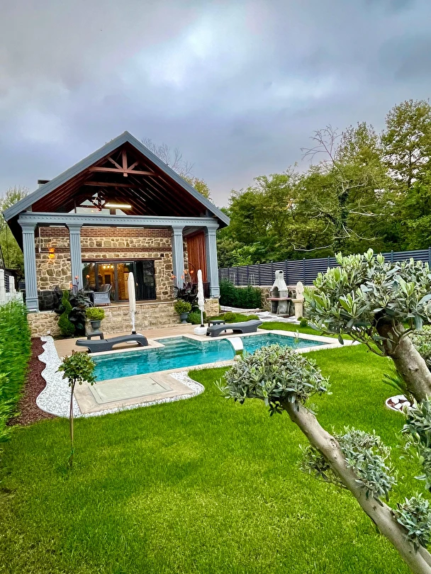 Her detayı özenle düşünülmüş bu özel konaklama alanı, yemyeşil ormanların içinde; özel havuz, modern iç tasarım ve doğayla bütünleşen mimarisiyle hem huzur hem de konfor vadediyor.