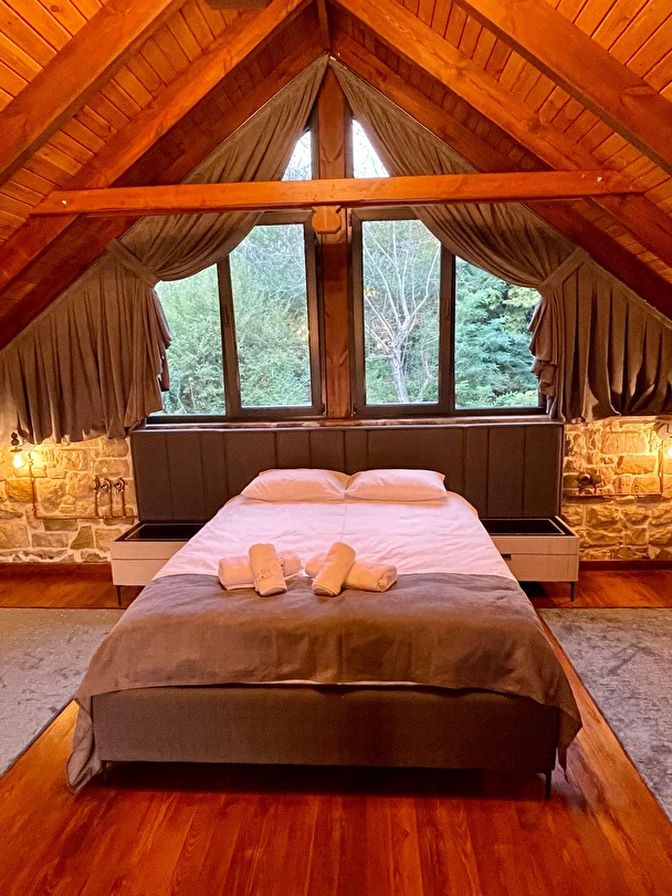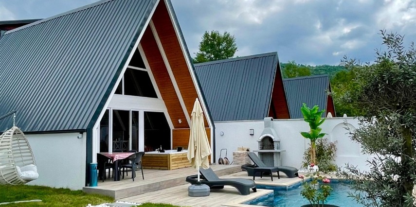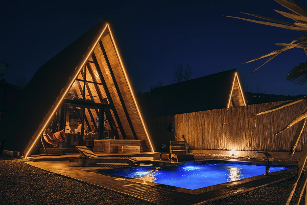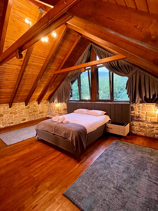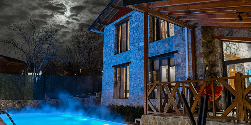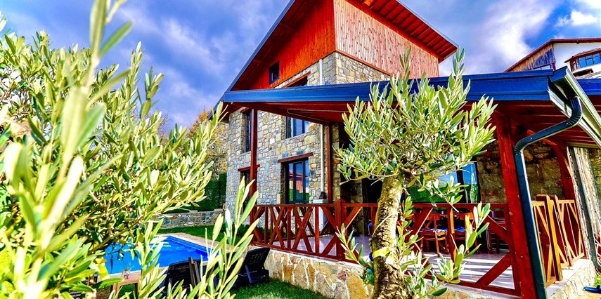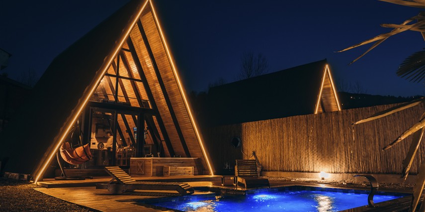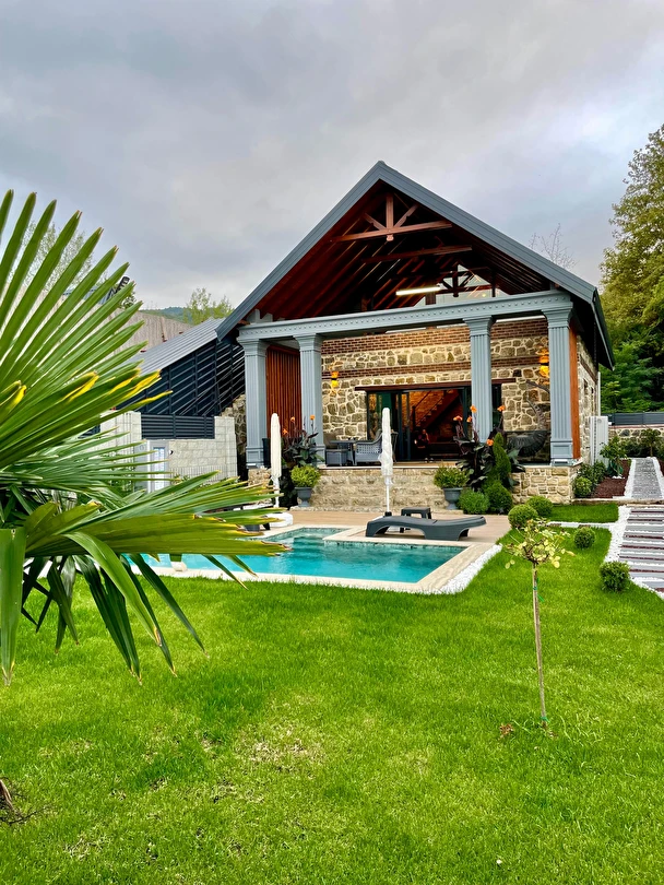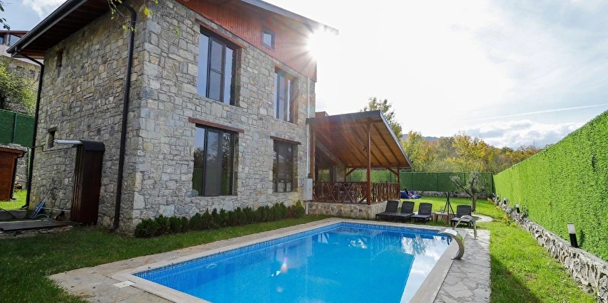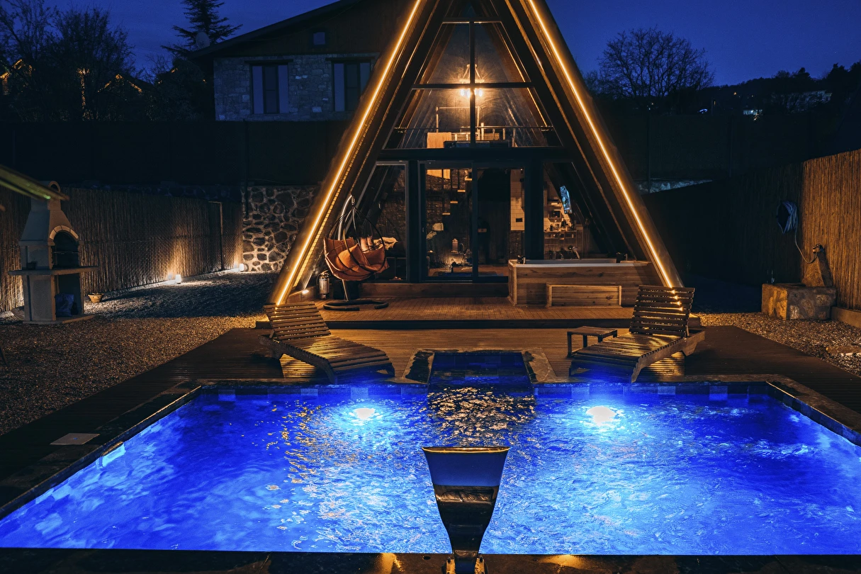 Her detayı özenle düşünülmüş bu özel konaklama alanı, yemyeşil ormanların içinde; özel havuz, modern iç tasarım ve doğayla bütünleşen mimarisiyle hem huzur hem de konfor vadediyor.