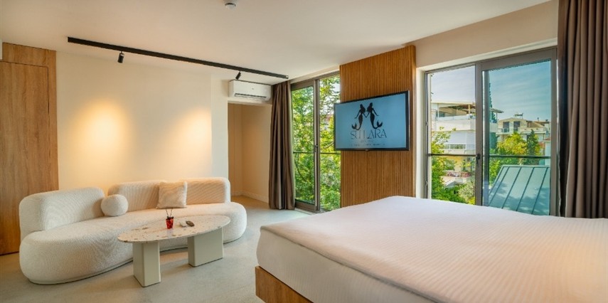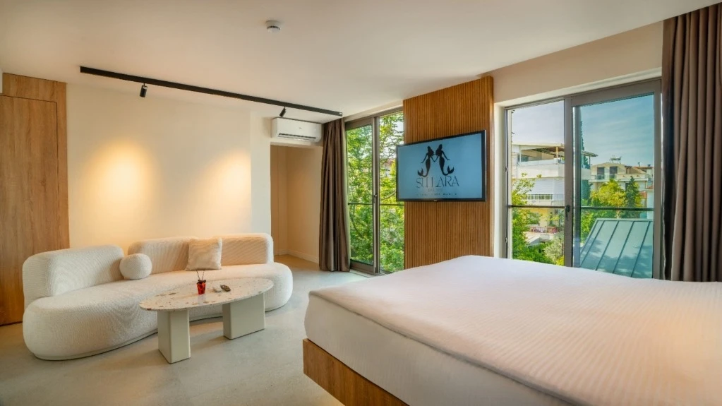 Sulara Exclusive Hotel’in Standart odaları, Antalya’nın eşsiz doğasını pencerenizden izleme fırsatı sunuyor. Sabah uyandığınızda sizi karşılayan yemyeşil ağaçlar ve uzaklardaki Akdeniz manzarası, güne huzur dolu bir başlangıç yapmanızı sağlar. Bu odalar, sadece konforlu bir yatak ve modern olanaklar sunmakla kalmıyor, aynı zamanda Antalya’nın doğal güzellikleriyle iç içe bir deneyim vaat ediyor. İster iş seyahatiniz sırasında kısa bir mola vermek isteyin, ister şehri keşfettikten sonra manzaranın tadını çıkarmak; Sulara’nın Standart odaları, beklentilerinizin ötesinde bir görsel şölen ve huzur dolu bir atmosfer sunar. Antalya’da manzaralı butik otel arayanlar için ideal bir tercih.