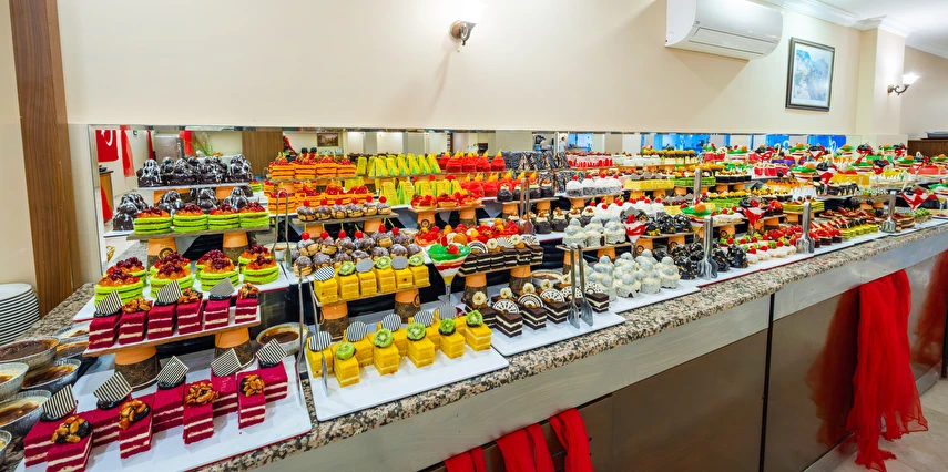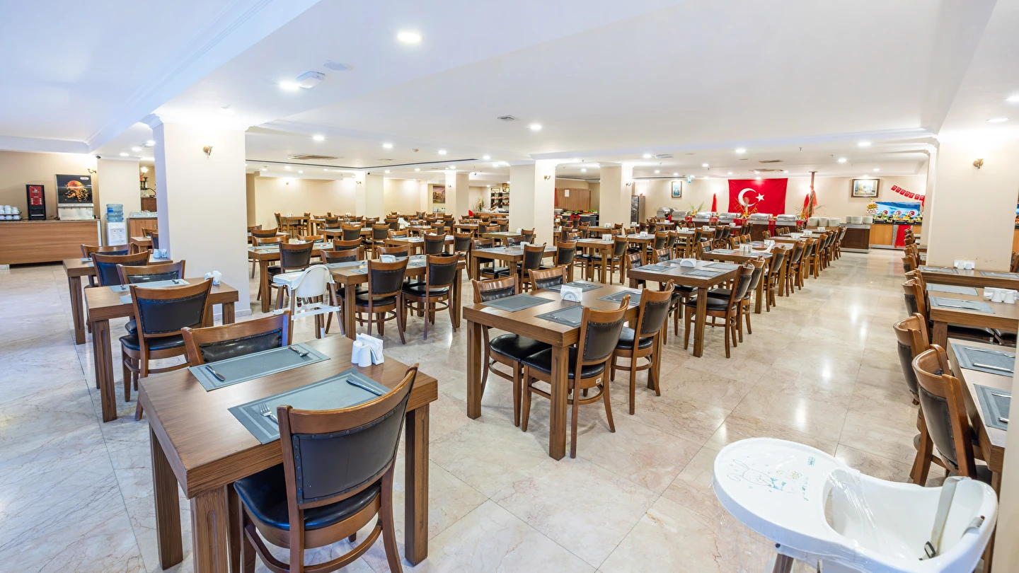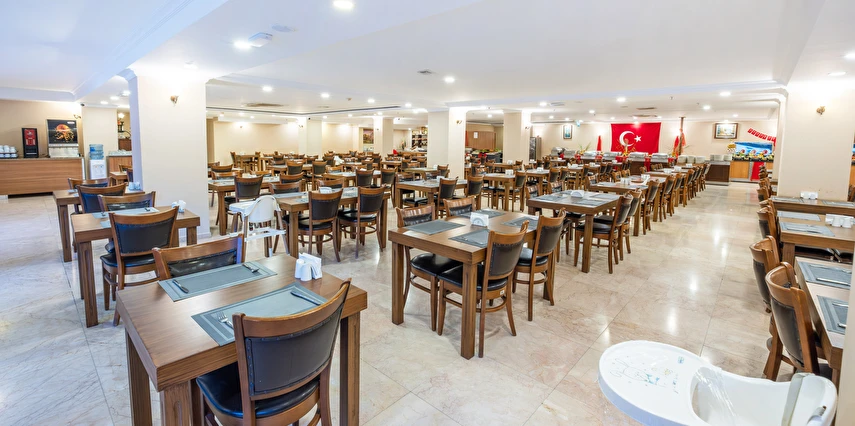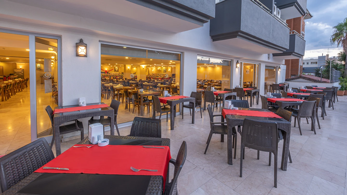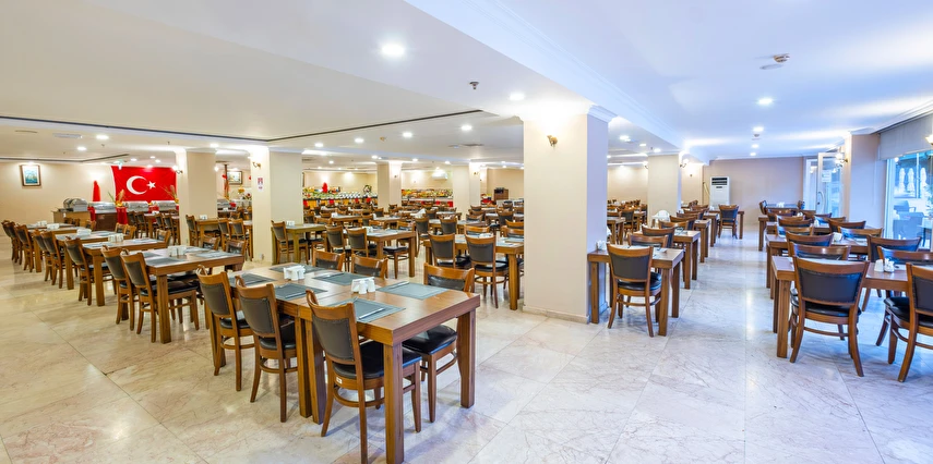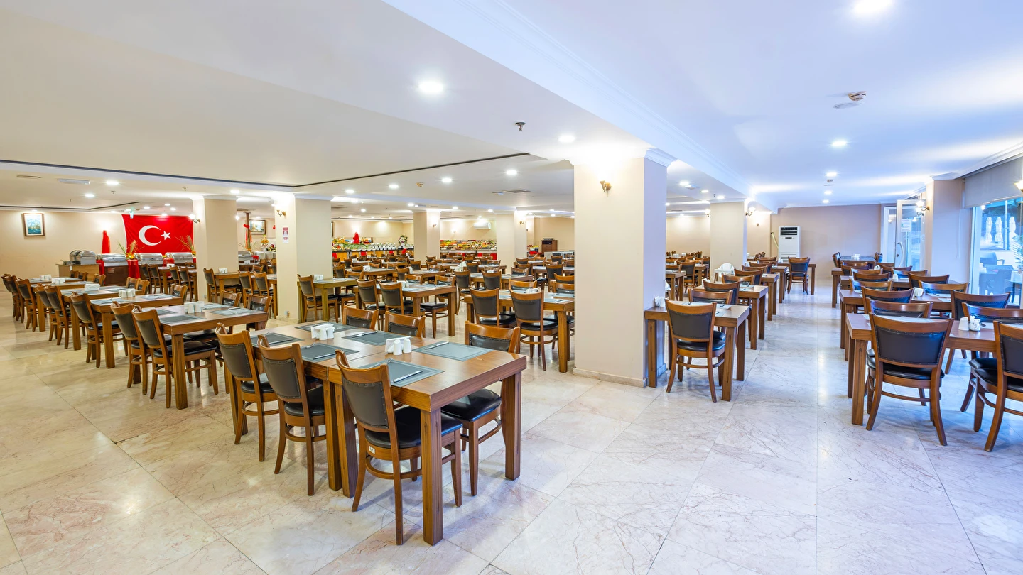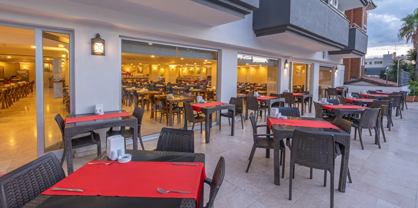 Sabah kahvaltısı, öğle yemeği ve akşam yemeği açık büfe olup, tesisin belirlemiş olduğu markalar dahilinde yerli alkollü ve alkolsüz içecekler 10:00 ile 23:00 saatleri arasında ücretsizdir. İthal içecekler, taze meyve suları, Türk kahvesi, tüm şişe ve teneke içecekler ücretlidir.