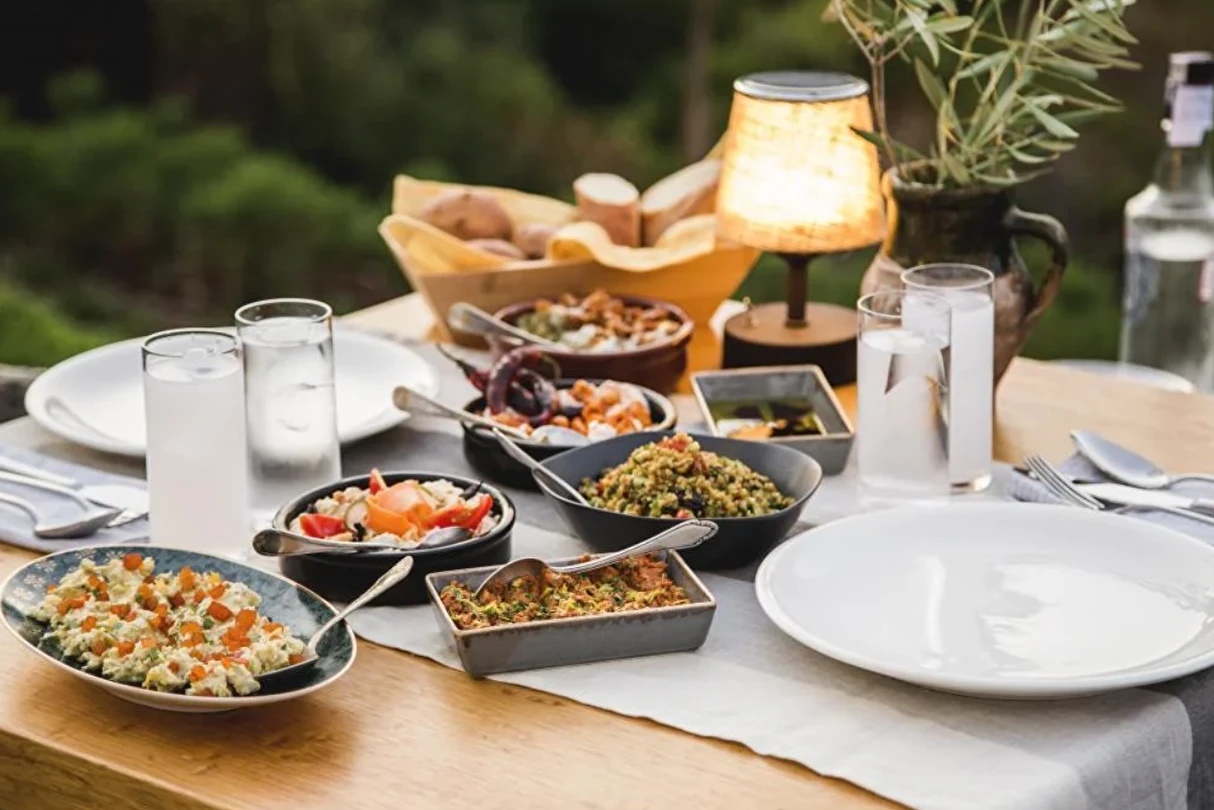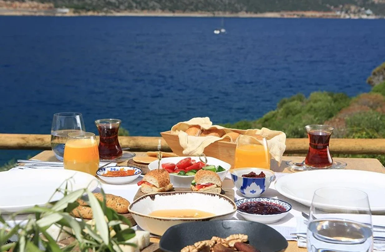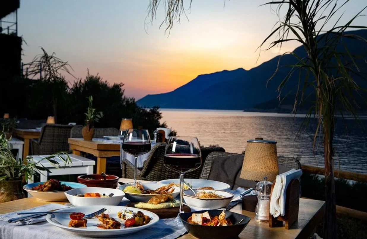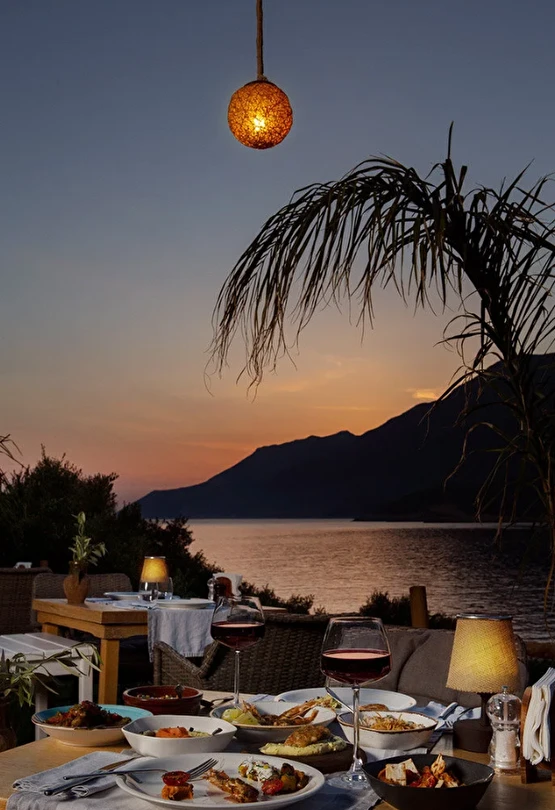 Kaş’ın en güzel manzaralarından birine karşı, gün batımının renkleri altında kurulan sofralarda; yemek yapmayı tutkuyla benimsemiş Mutfak Sanatları Akademisi mezunu şeflerimizin hazırladığı özel akşam menüsüyle buluşursunuz. Her akşam, sadece bir yemek değil; ambiyansıyla, sunumuyla ve lezzetiyle unutulmaz bir deneyim yaşarsınız. Mutfağımızda kullanılan tüm ürünler Manavgat Çolaklı Mevkii’ndeki çiftliğimizde büyük bir titizlikle yetiştiriliyor. Bu ürünlerle günlük olarak hazırlanan tüm lezzetler en taze haliyle servis ediliyor, kalan yemekler ise sokak hayvanlarıyla paylaşılıyor. Gün boyu devam eden lezzet şöleni sizi bekliyor.