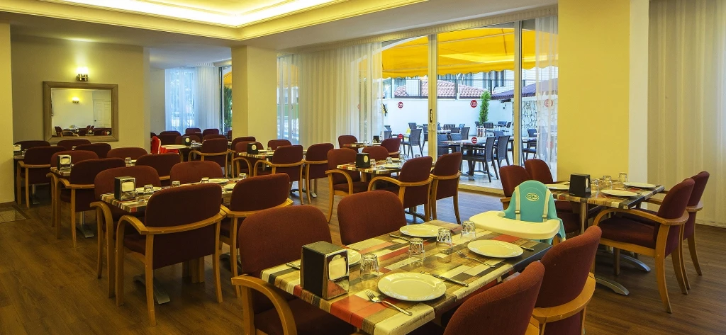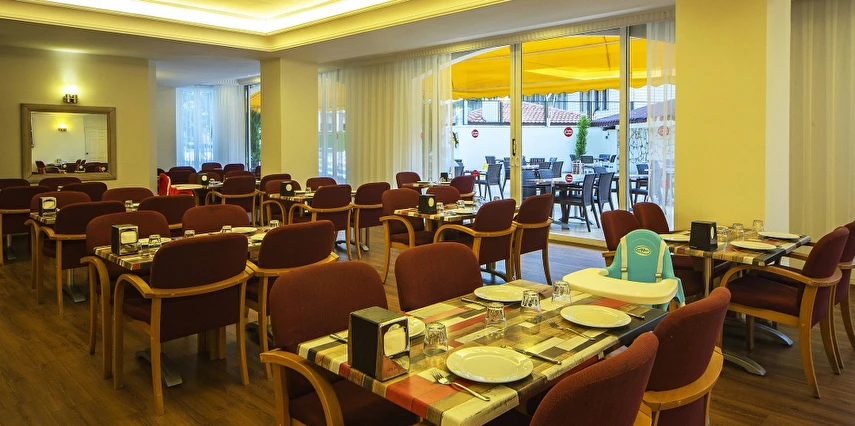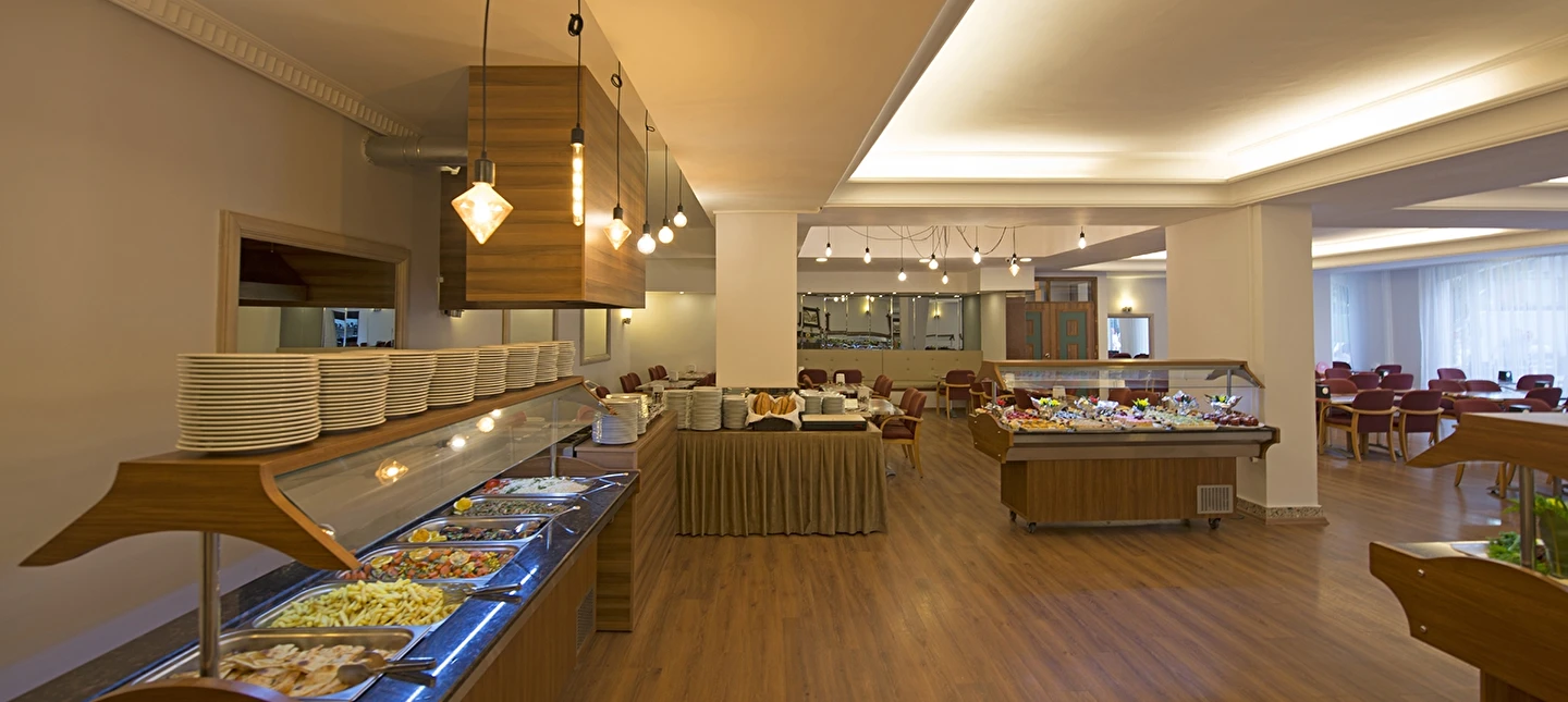 Sabah kahvaltısı, öğle yemeği ve akşam yemeği açık büfe olup, tesisin belirlemiş olduğu markalar dahilinde yerli alkollü ve alkolsüz içecekler, Soğuk soft, sıcak içecekler 10:00 ile 22:30 saatleri arasında ücretsizdir. İthal içecekler, Minibar,Türk kahvesi, dondurma, Tüm kutu içecekler, Enerji İçeceği ücretlidir.