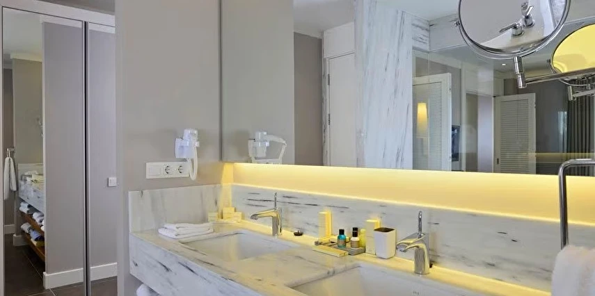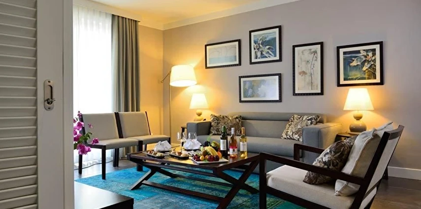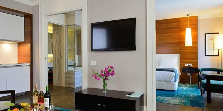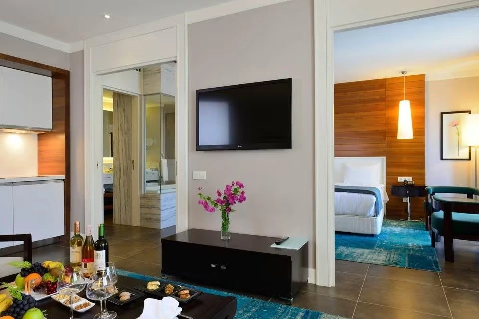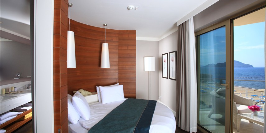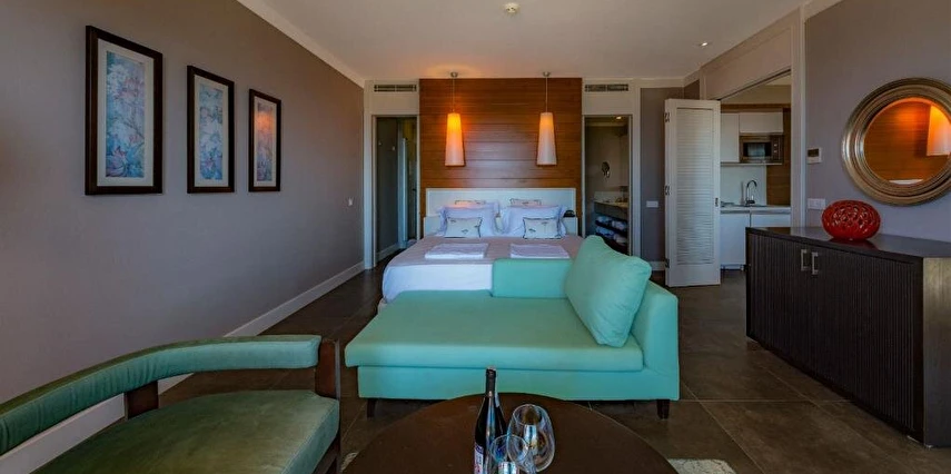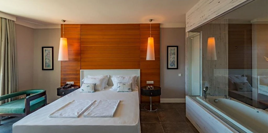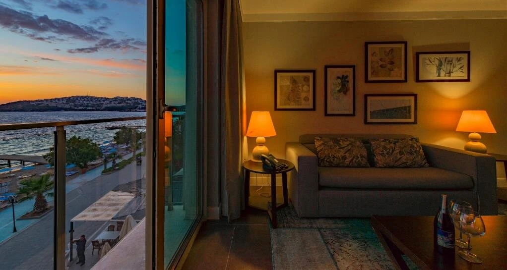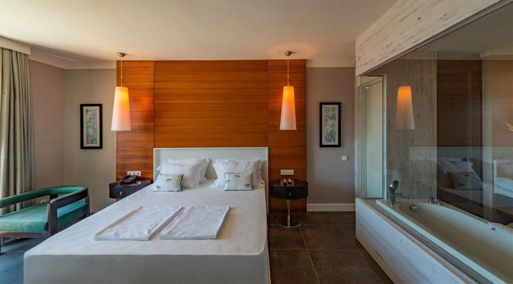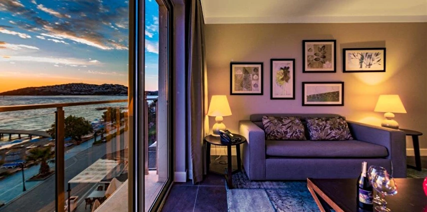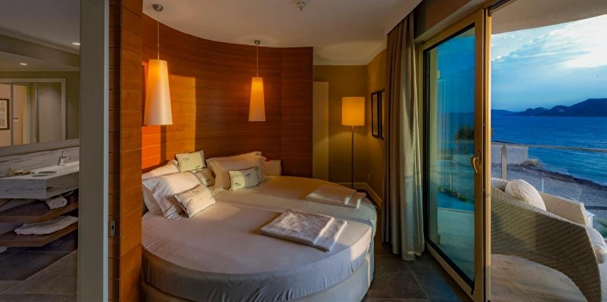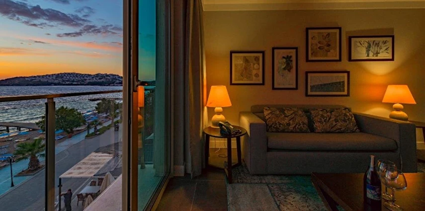 Geniş ve modern süitleri, panoramik deniz manzarasıyla buluşurken; otelin özel iskelesi ve kum plajı gün boyu güneşin ve denizin tadını çıkarabileceğiniz bir alan sunuyor. Zengin menüsüyle otel restoranı, günün her saatinde lezzetli molalar sunarken; kafesi ise deniz esintileri eşliğinde keyifli bir sohbet için ideal.