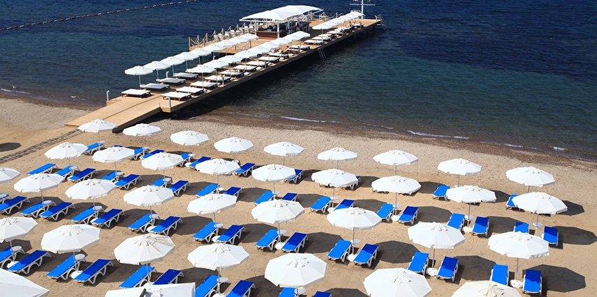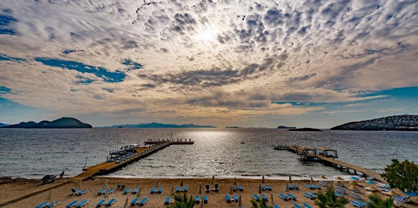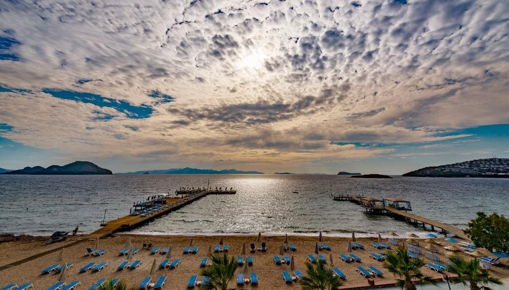 Sundance Suites Hotel, Bodrum Kadıkalesi’nde 4.000 m²’lik geniş bir alana yayılan özel kum plajıyla deniz ve güneşin tadını doyasıya çıkarma imkanı sunar. Tesisin kendine ait iskelesi, Ege’nin berrak sularında serinlemek ve gün batımını izlemek için eşsiz bir noktadır. Otelde bulunan 2 adet açık yüzme havuzu ise hem yüzme keyfi hem de gün boyu dinlenme için ideal bir alternatif sunar. Plajda, havuz başında ve iskelede yer alan konforlu şezlonglar ve gölgelikler sayesinde tatilinizin her anı rahat ve ayrıcalıklı geçer.