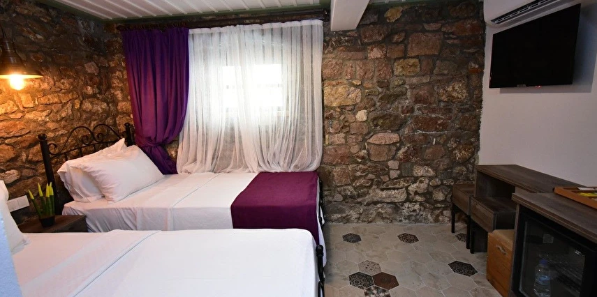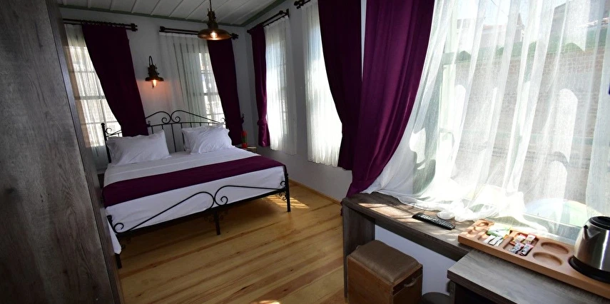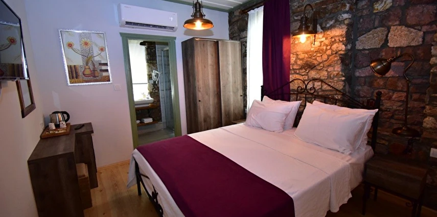 Butik otelin her odasında ahşap mobilyalar, pirinç karyolalar, ahşap pencereler, klima, mini buzdolabı, kettle ve içecek ikramlarımız bulunmaktadır.