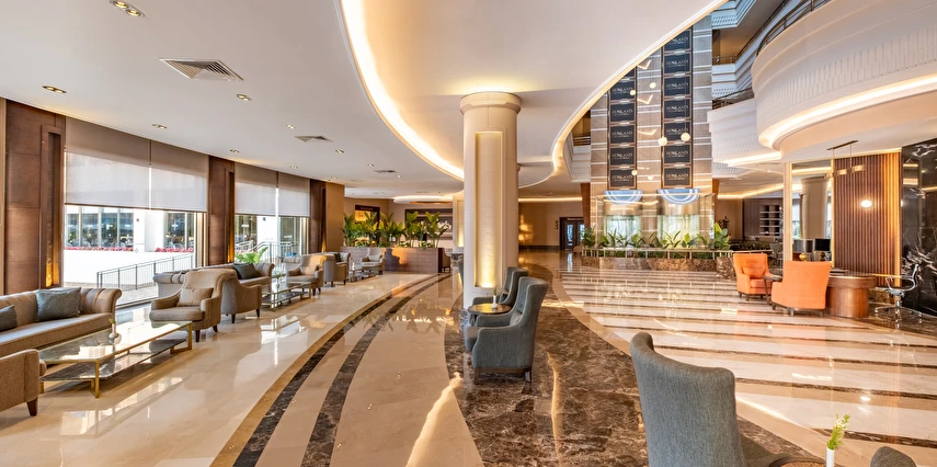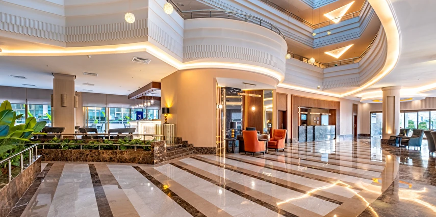 Lobby Bar (10:00 ile 24:00 saatleri arasında)(Tesisin Belirlediği Alkollü İmport İçecekler &Yerli Alkollü ve Alkolsüz içecekler + Kokteyl)