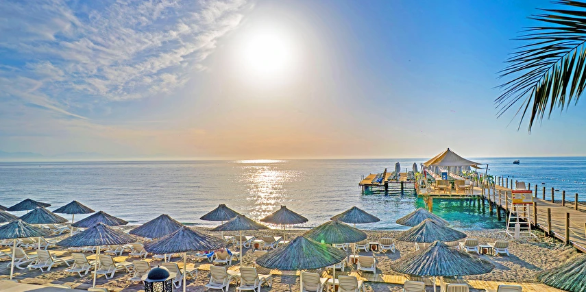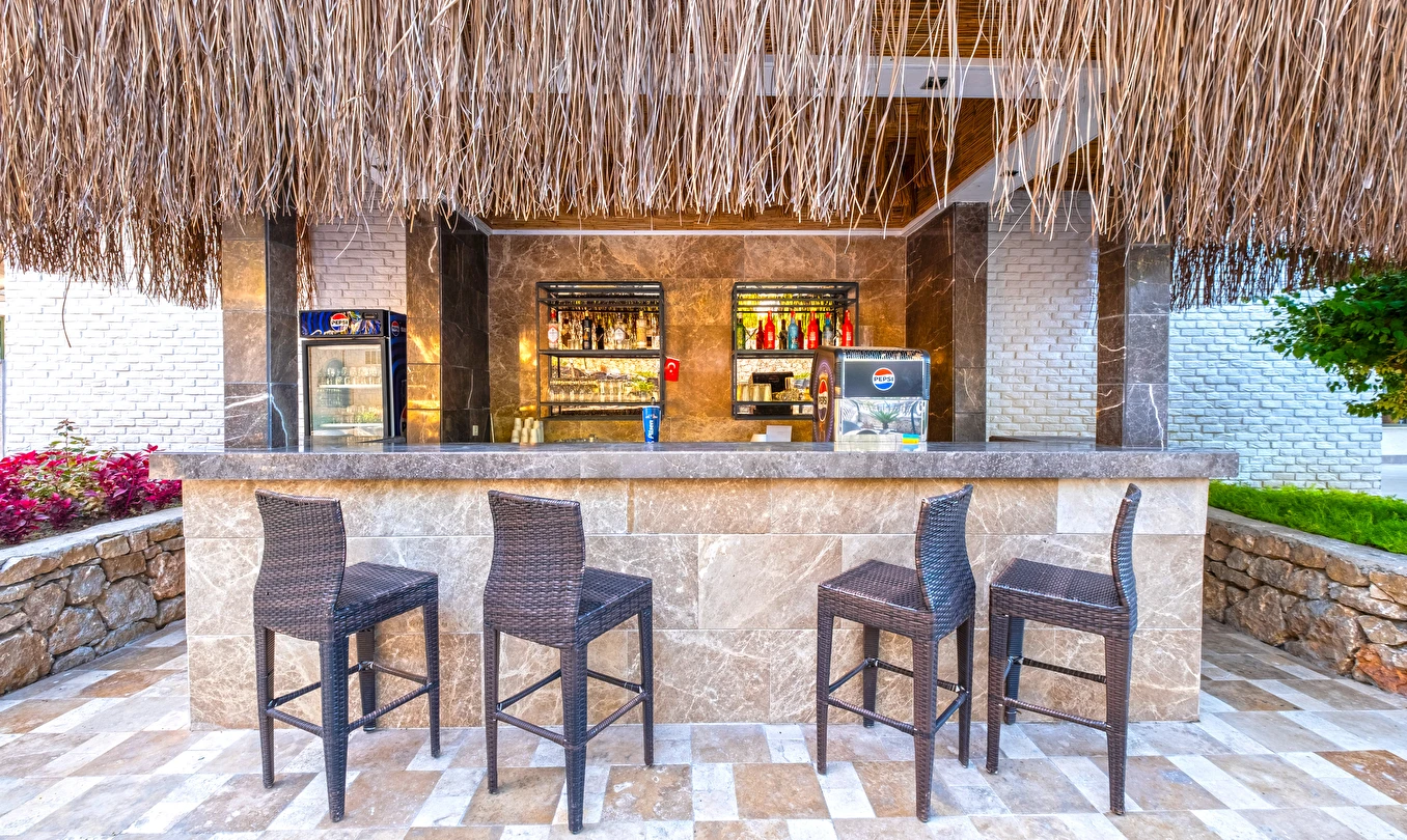 Beach Bar (10:00 ile 17:30 saatleri arasında)(Tesisin Belirlediği İthal Alkollü İçecekler &Yerli Alkollü ve Alkolsüz içecekler + Kokteyl)