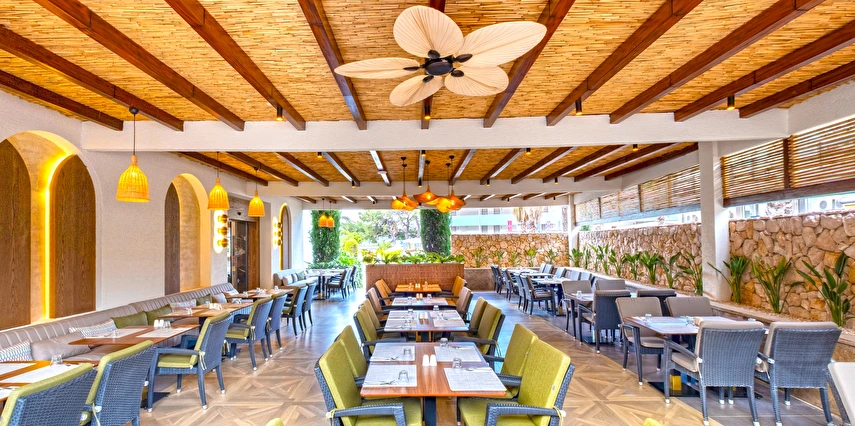 Konaklama boyunca A'la Carte Restaurantlarda rezervasyon ile 1 kez ücretsiz olarak faydalanılabilir (min. 6 gece konaklama). Rezervasyon gereklidir.