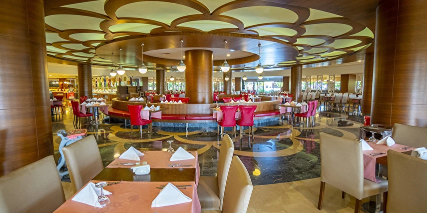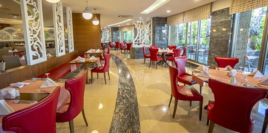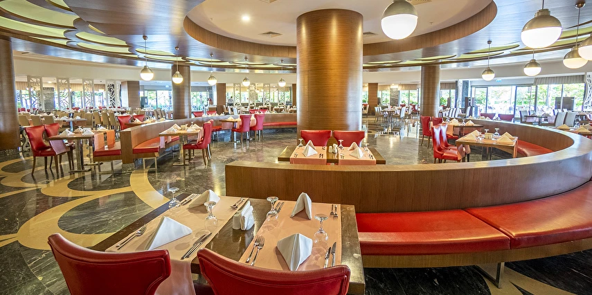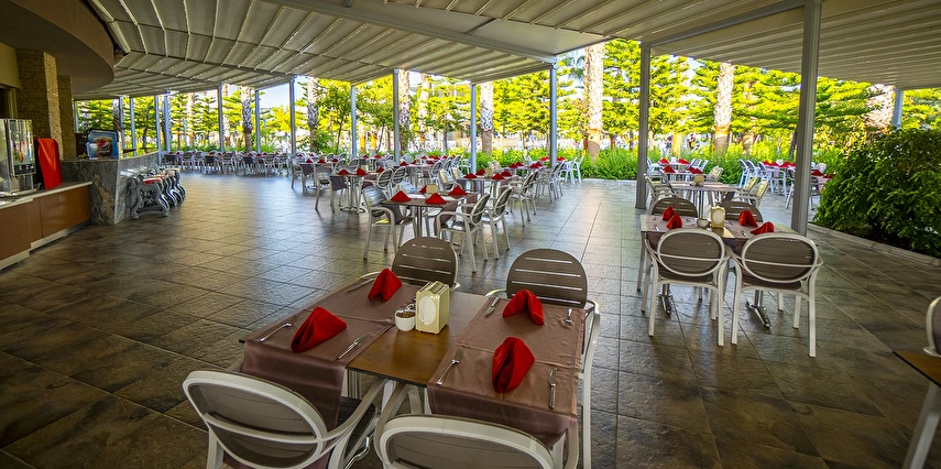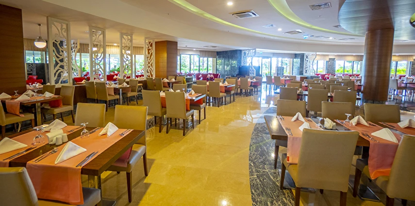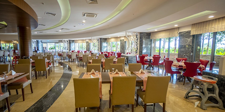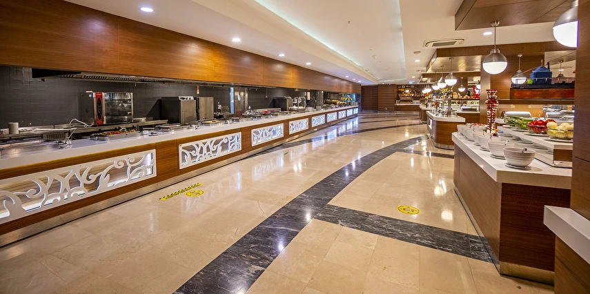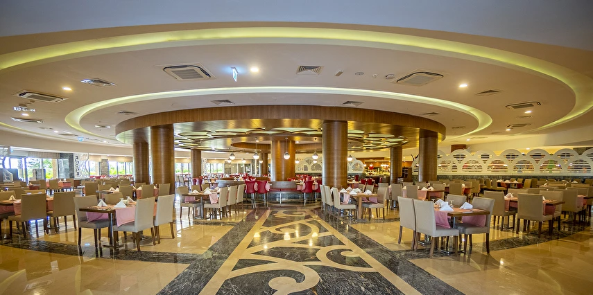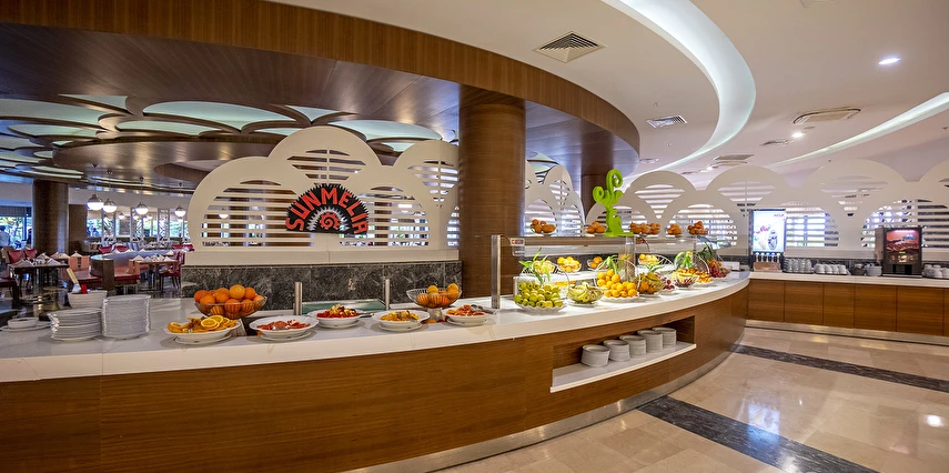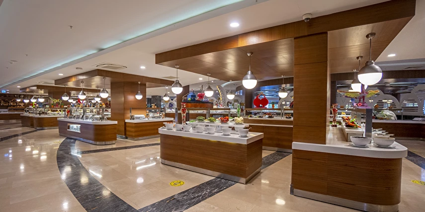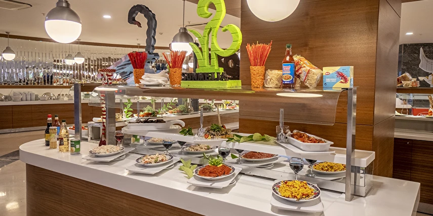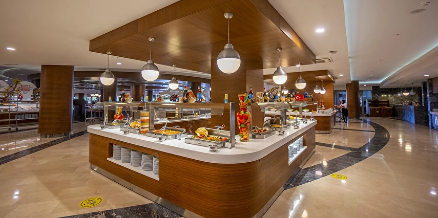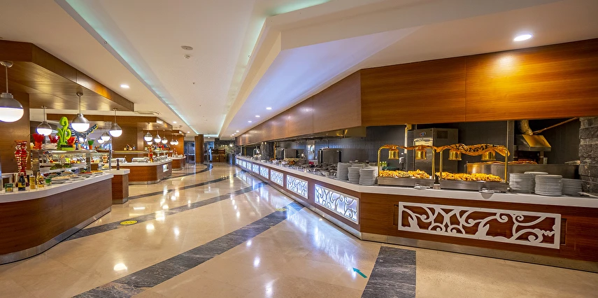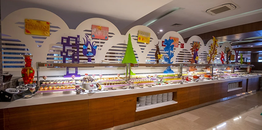 Sabah kahvaltısı, öğle ve akşam yemekleri açık büfe olup, tesisin belirlemiş olduğu markalar dahilinde tüm yerli içecekler 24 saat ücretsizdir. Extra İçecekler24 SaatTaze sıkılmış portakal, Nar suyu, şişe ve kutu içecekler ücretlidir.