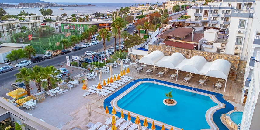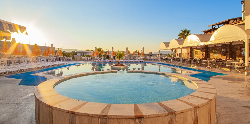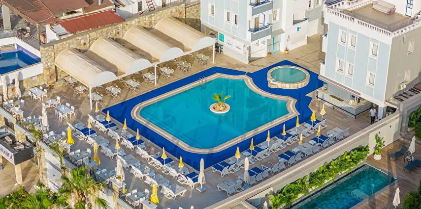 Havuz kenarında şezlong ve şemsiye ücretsizdir.