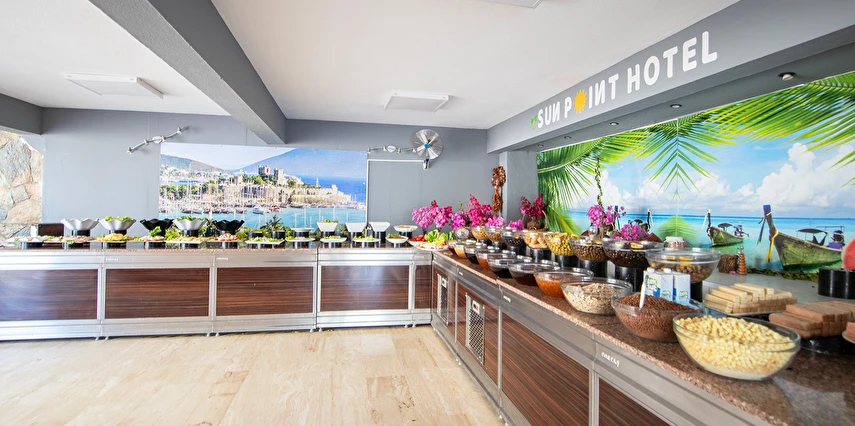 Sabah kahvaltısı, Öğle ve Akşam yemekleri açık büfe olup, tesisin belirlemiş olduğu markalar dahilinde yerli alkollü (Rakı, Cin, Votka, Bira ve Şarap) ve alkolsüz içecekler (Soft içecekler, sıcak içecekler, konsantre meyve suları) 11:00 ile 23:00 saatleri arasında ücretsizdir. 23:00 ile 11:00 saatleri arasında tüm alkollü ve alkolsüz içecekler, Türk Kahvesi, yabancı içecekler, Taze Sıkılmış Meyve Suları ücretlidir.