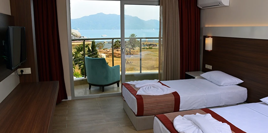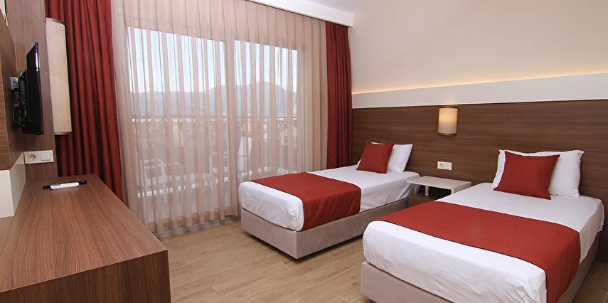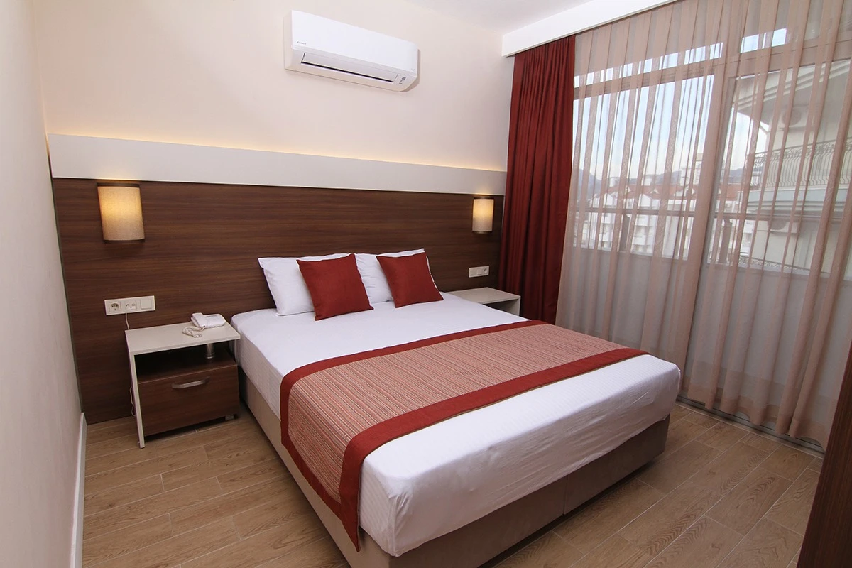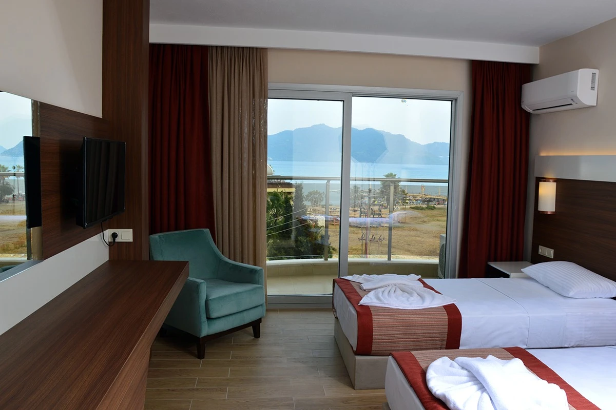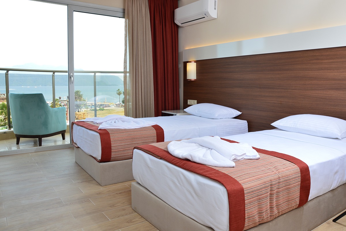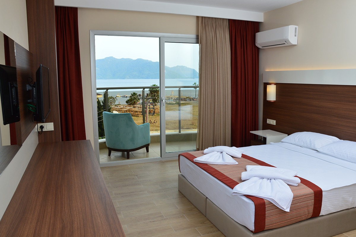 24 saat resepsiyon hizmeti verilen tesisimiz ücretsiz wi-fi internet erişimi de sunmaktadır. Tüm odalarımızda balkon, klima, TV, telefon, mini bar, kiralık kasa ve banyolarımızda saç kurutma makinesi bulunmaktadır. ayrı olan çocuk havuzumuzda ve oyun parkımızda çocuklarınız güven içinde oynarken siz geniş terasımızda havuzun ve güneşin tadını çıkarabilirsiniz. 1 Haziran 2018 tarihinde açılan otelimiz sahile 50 metre mesafede ailelere geniş ve konforlu odalarımızda huzurlu bir tatil imkanı sunmaktadır.