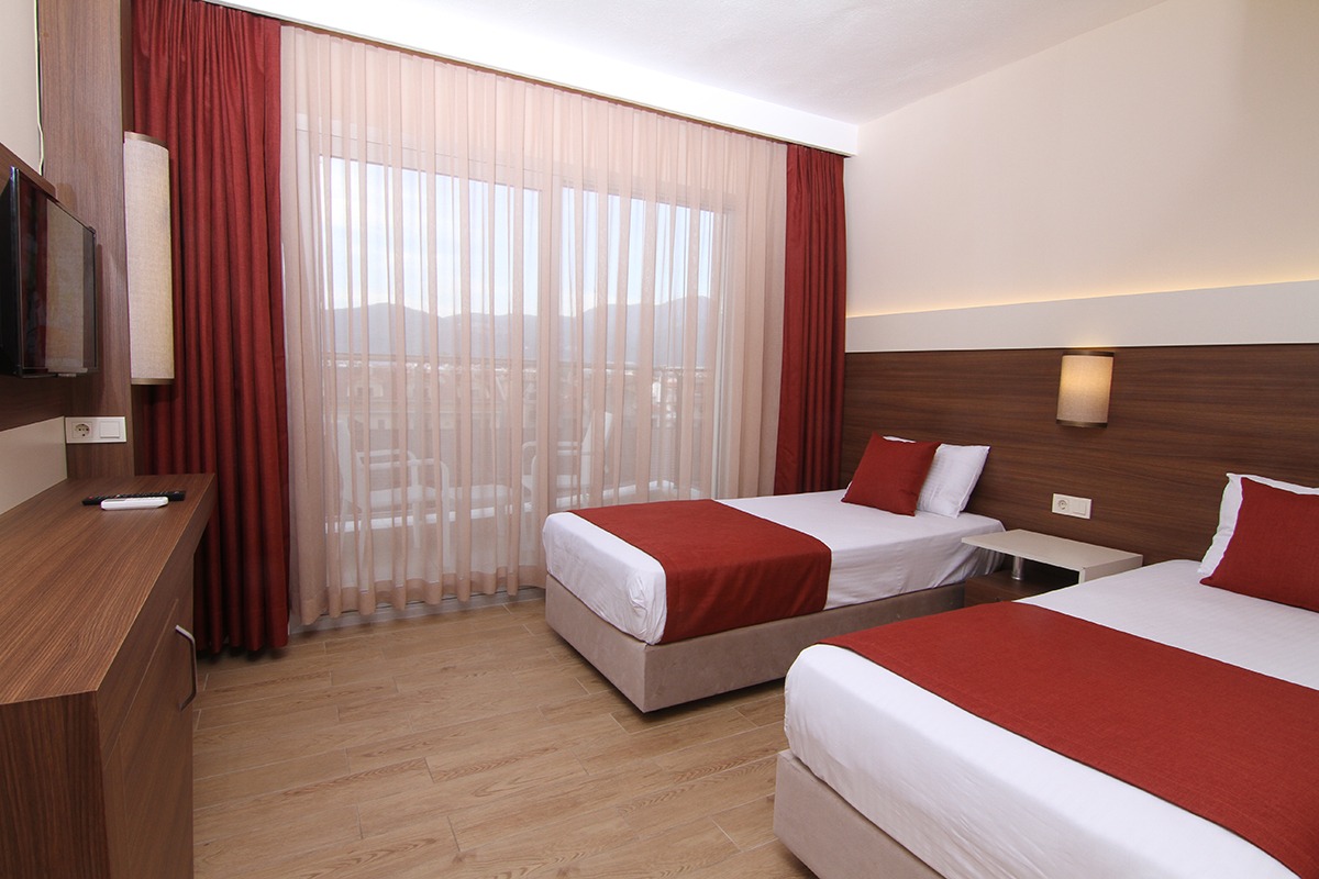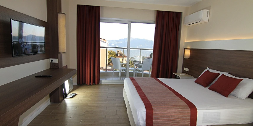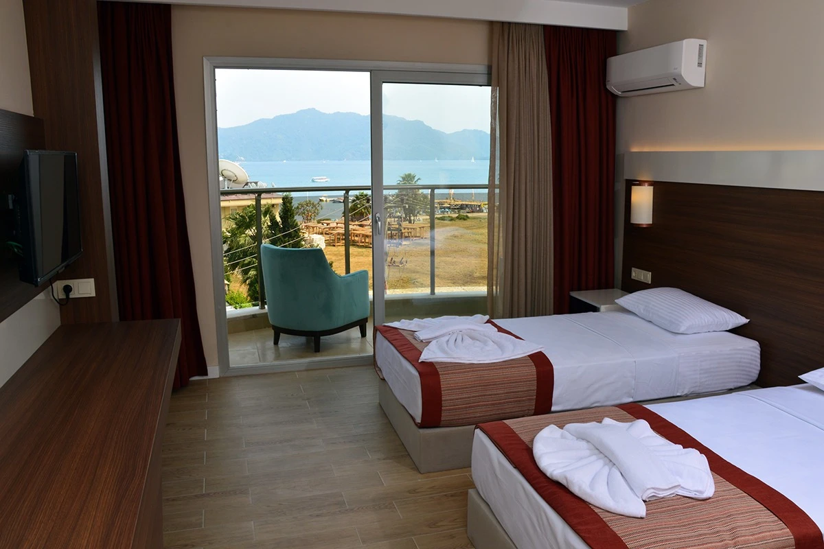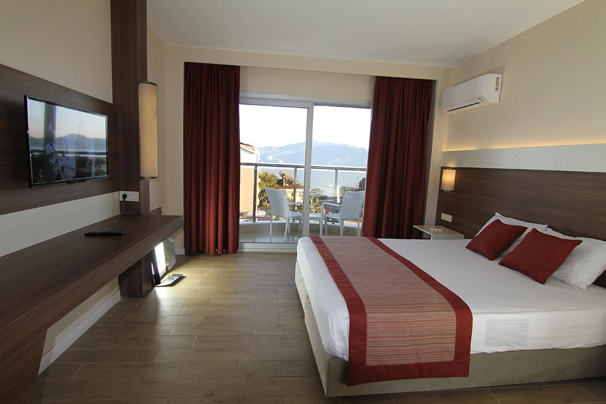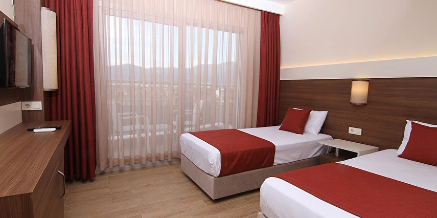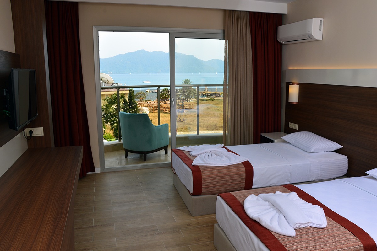 24 saat resepsiyon hizmeti verilen tesisimiz ücretsiz wi-fi internet erişimi de sunmaktadır. Tüm odalarımızda balkon, klima, TV, telefon, mini bar, kiralık kasa ve banyolarımızda saç kurutma makinesi bulunmaktadır. ayrı olan çocuk havuzumuzda ve oyun parkımızda çocuklarınız güven içinde oynarken siz geniş terasımızda havuzun ve güneşin tadını çıkarabilirsiniz. 1 Haziran 2018 tarihinde açılan otelimiz sahile 50 metre mesafede ailelere geniş ve konforlu odalarımızda huzurlu bir tatil imkanı sunmaktadır.