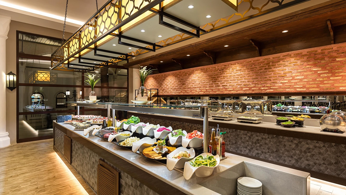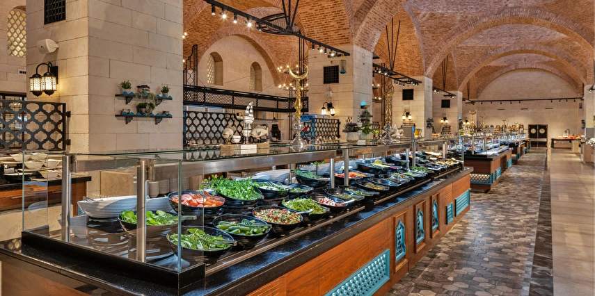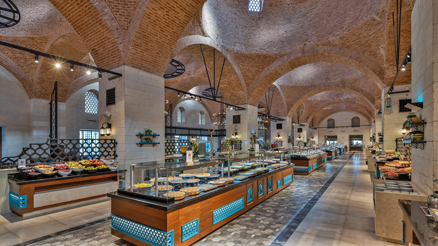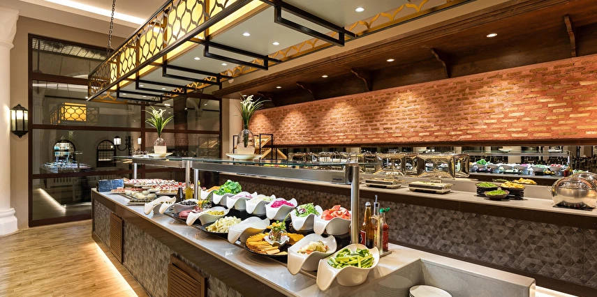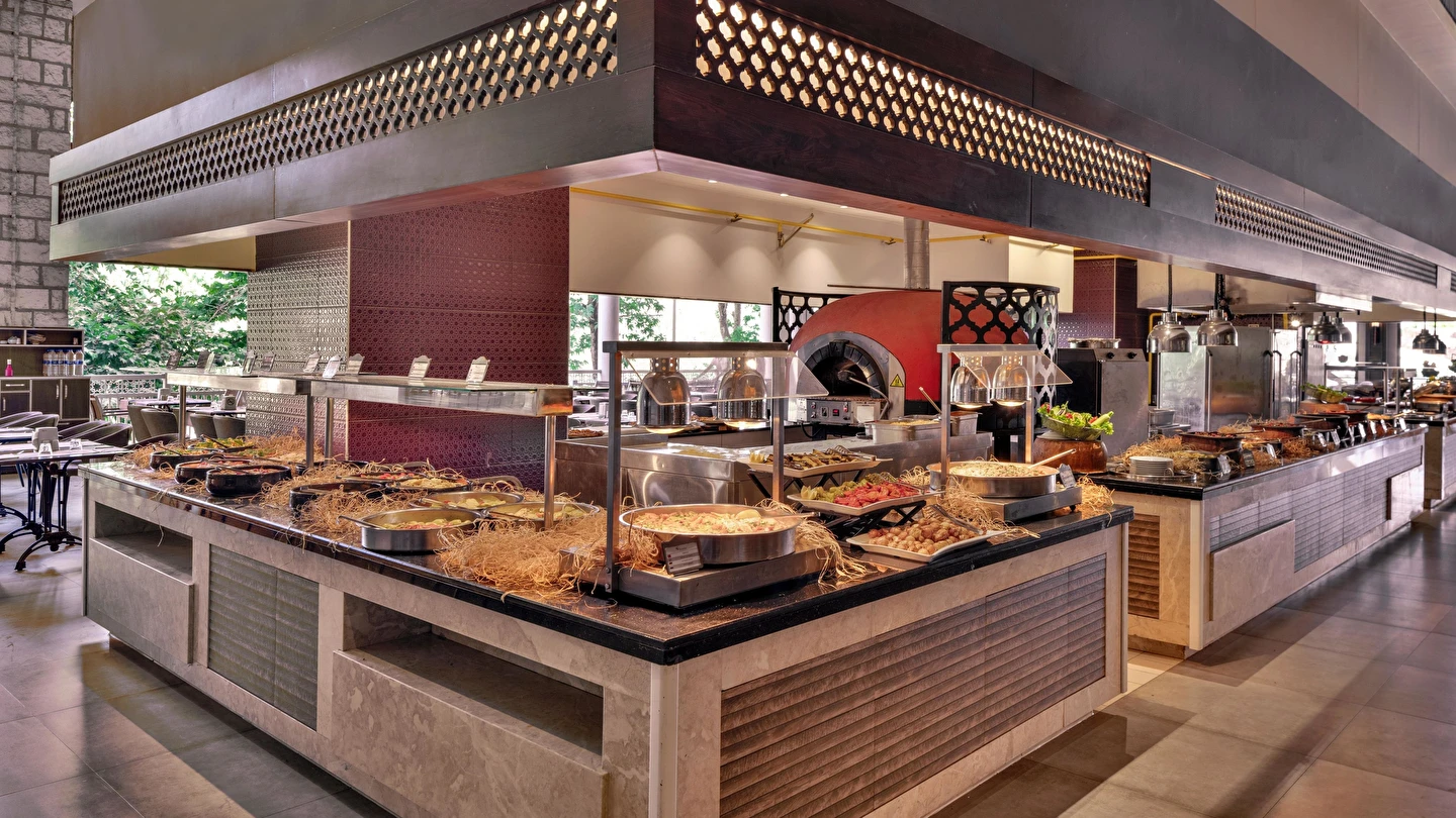 Sabah kahvaltısı, öğle yemeği ve akşam yemeği açık büfe olup, tesisin belirlemiş olduğu markalar dahilinde yerli alkollü ve alkolsüz içecekler 24 saat ücretsizdir. Konsepte dahil olmayan diğer içecekler, tüm şişeli içecekler, enerji içecekleri, bazı markalı şaraplar ve şampanyalar ile bazı özel ithal içecekler ücretlidir. Tüm restaurant ve barlarda içki/ içecek servisi kadeh/ bardak olarak yapılmaktadır.