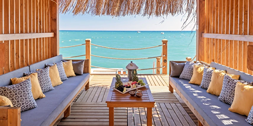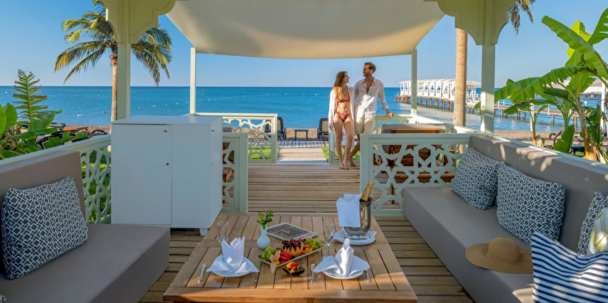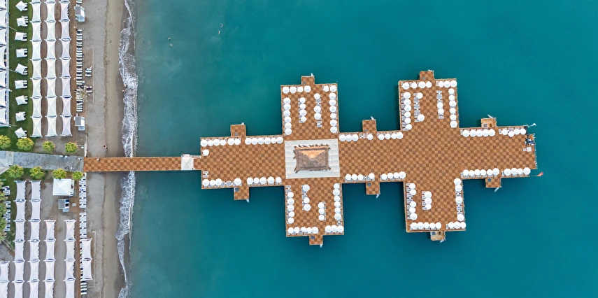 İskelede 15 adet gazebo, sahilde ise 4 adet VIP pavilyon bulunmaktadır.Gazebo özellikleri: oturma-dinlenme alanı, havlu, içecek servisi, sabah saatlerinde meyve servisi, öğleden sonra tatlı servisi, özel duş alanı, mini buzdolabı bulunmaktadır. Pavilyon özellikleri: gölgelikli terasta şezlong, oturma-dinlenme alanı, mini buzdolabı, kasa, havlu, içecek servisi, sabah saatlerinde meyve ve köpüklü şarap servisi, öğleden sonra tatlı servisi bulunmaktadır. Tüm pavilyonlar ve gazebolar ücrete tabi olup, rezervasyon için Misafir İlişkileri Departmanı ile iletişime geçilmelidir.