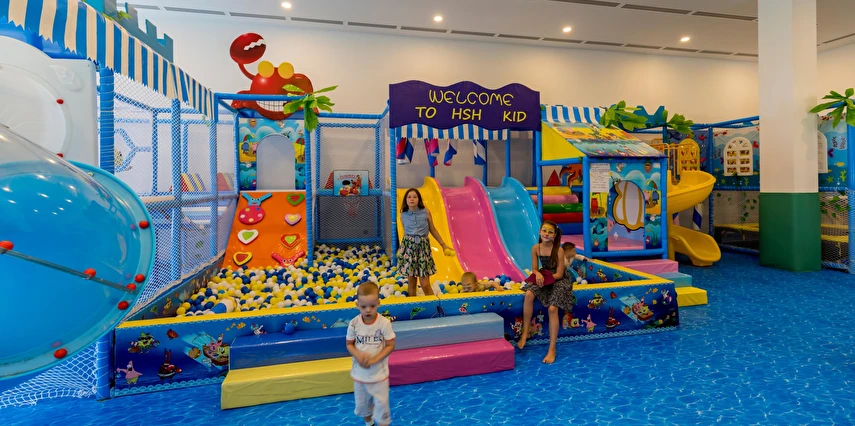 Çocuk kulübünün kapalı alanları ve bahçesinde büyük gölgelikli bir çocuk oyun parkuru bulunmaktadır. Animatörler eşliğinde her gün farklı spor aktiviteleri, her günü değişen temalı aktiviteler, havuz oyunları, özel oyunlar, kurslar ve boyama aktiviteler, yarışmalar ve yaratıcılıklarını geliştirecek, Plajda gölgelikli çocuk oyun parkı, özel mini sahne mevcuttur. Mini kulüp mevsim koşullarına göre hizmet vermektedir.