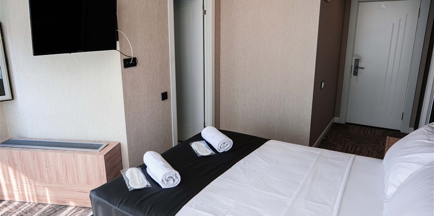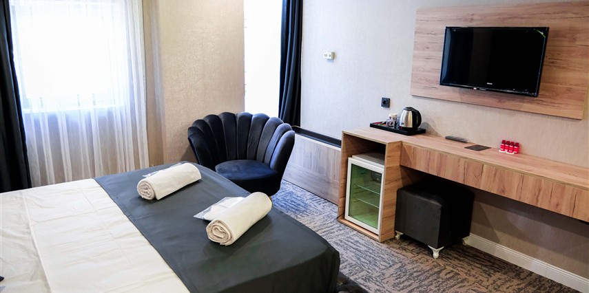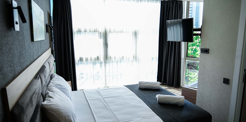 Fonksiyonel ve modern çizgilerle tasarlanan odalar, konforlu bir şehir konaklaması için ihtiyaç duyulan tüm olanaklara sahiptir.