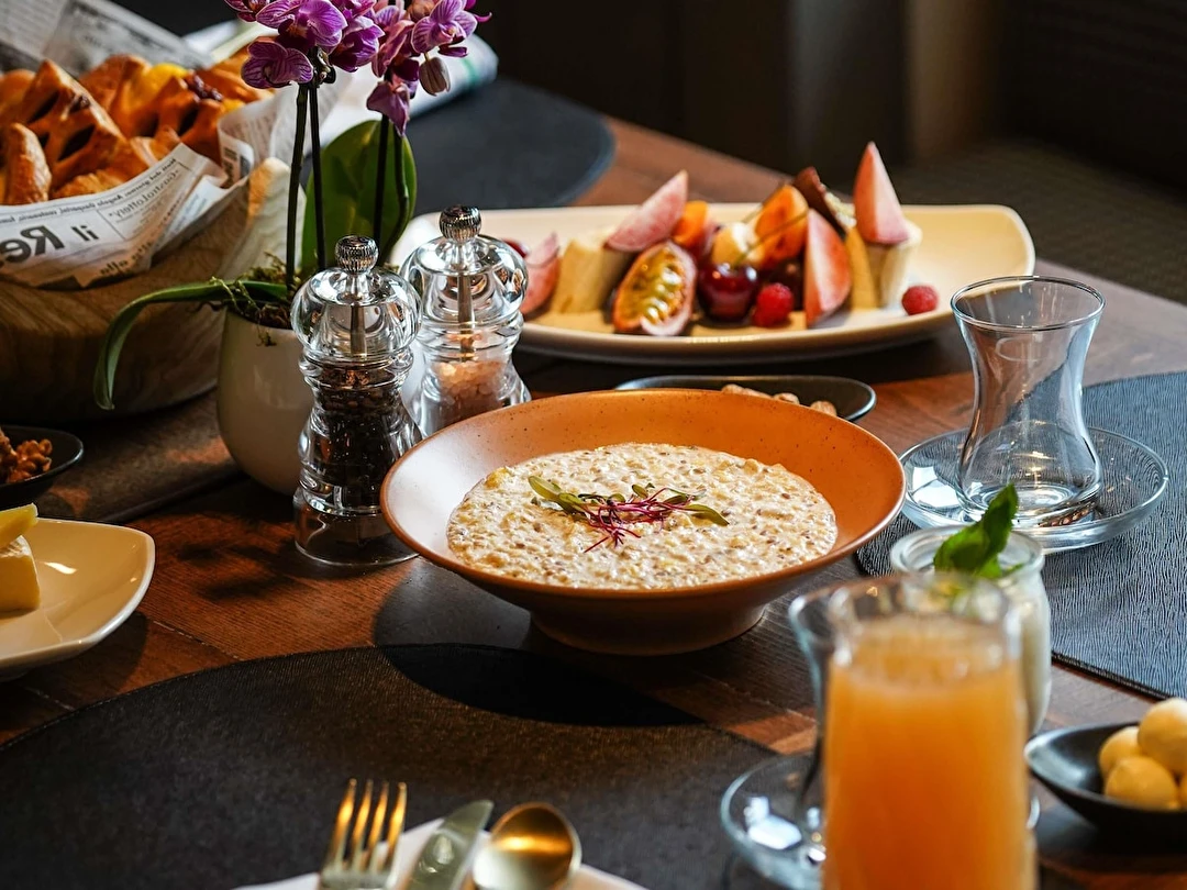 Yemeklerimizde Zindelik konsepti, en taze malzemeleri kullanmak olarak karşımıza çıkıyor. Restoranlarımızda, özel yemek salonumuzda ve oda servisimizde Türk mutfağından ve uluslararası mutfaklardan mevsime uygun, sağlıklı yemekler bulabilirsiniz. Meyve suyu ve detoks barımızda Vitality alkolsüz içeceklerle ferahlayabilirsiniz.