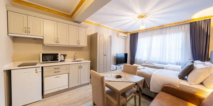 Daha Fazla GösterTaksim Meydanı ve hareketli İstiklal Caddesi’ne sadece birkaç dakikalık yürüyüş mesafesinde yer alan apart dairelerimiz, tam donanımlı mutfağı, yüksek hızda ücretsiz WiFi’si ve modern konforuyla çiftler, aileler ya da iş seyahatindeki misafirler için ideal.