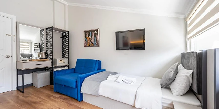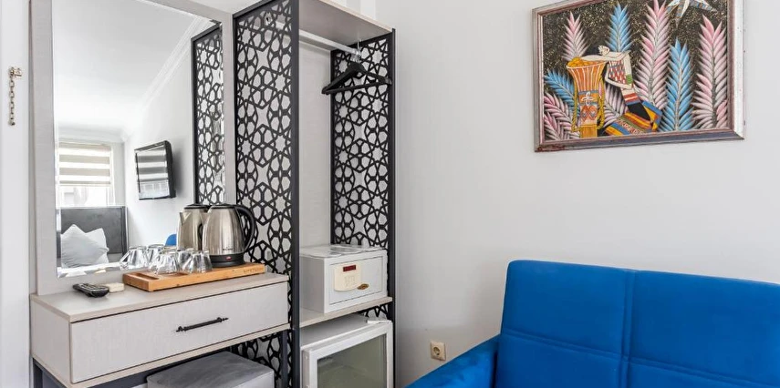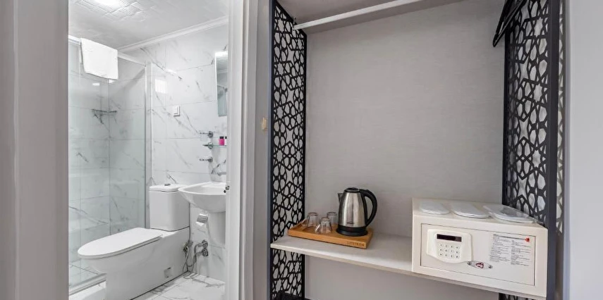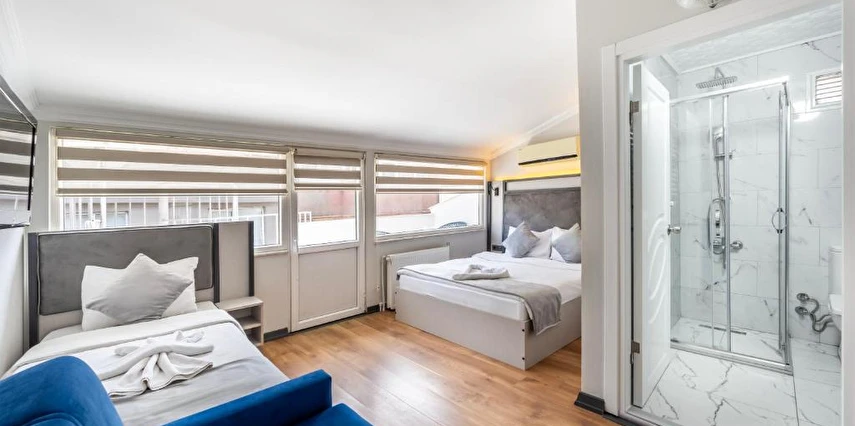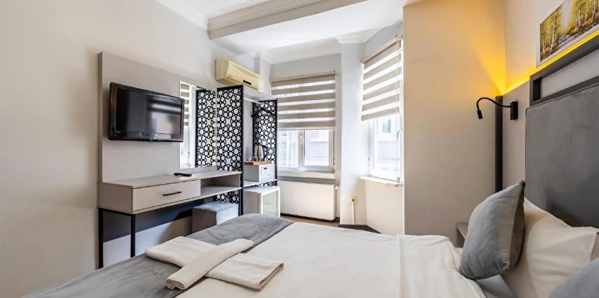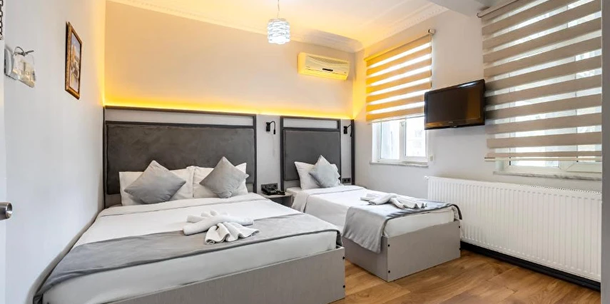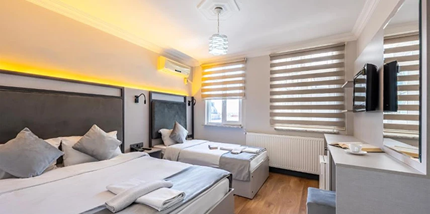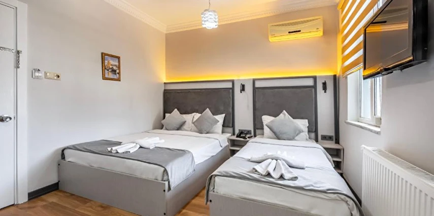 Daha Fazla GösterTaksim Trust Hotel zevkli bir şekilde dekore edilmiş odalarında; düz ekran TV, klima, elektrikli su ısıtıcısı, mini bar ve elektronik kasa, ücretsiz Wi-Fi ve 7/24 resepsiyon hizmeti içeren modern odalar sunmaktadır.