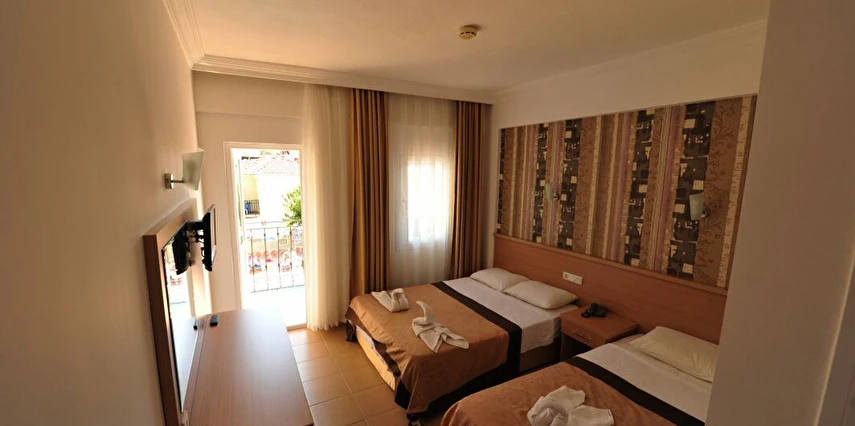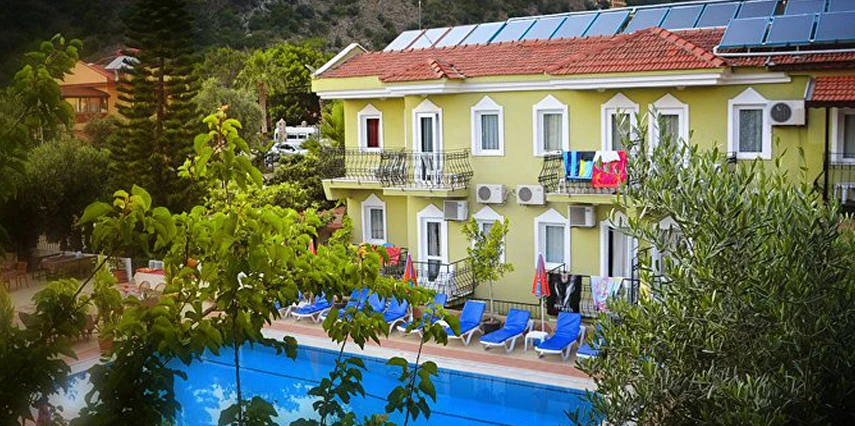 Fethiye Ölüdeniz'de yer alan otelimiz aile işletmesidir. Tek blok ve 2 kattan oluşmaktadır. Restaurant, havuz, çocuk havuzu, otopark, bar bulunmaktadır. Otelimiz Belcekız Plajı'na 300m mesafede (halka açık ücretsiz olup şezlong ve şemsiye ücretlidir), Kumburnu Plajı'na 800m mesafede (giriş, şezlong ve şemsiye ücretlidir), Fethiye'ye 12 km, Dalaman Havalanı'na 60 km mesafededir.